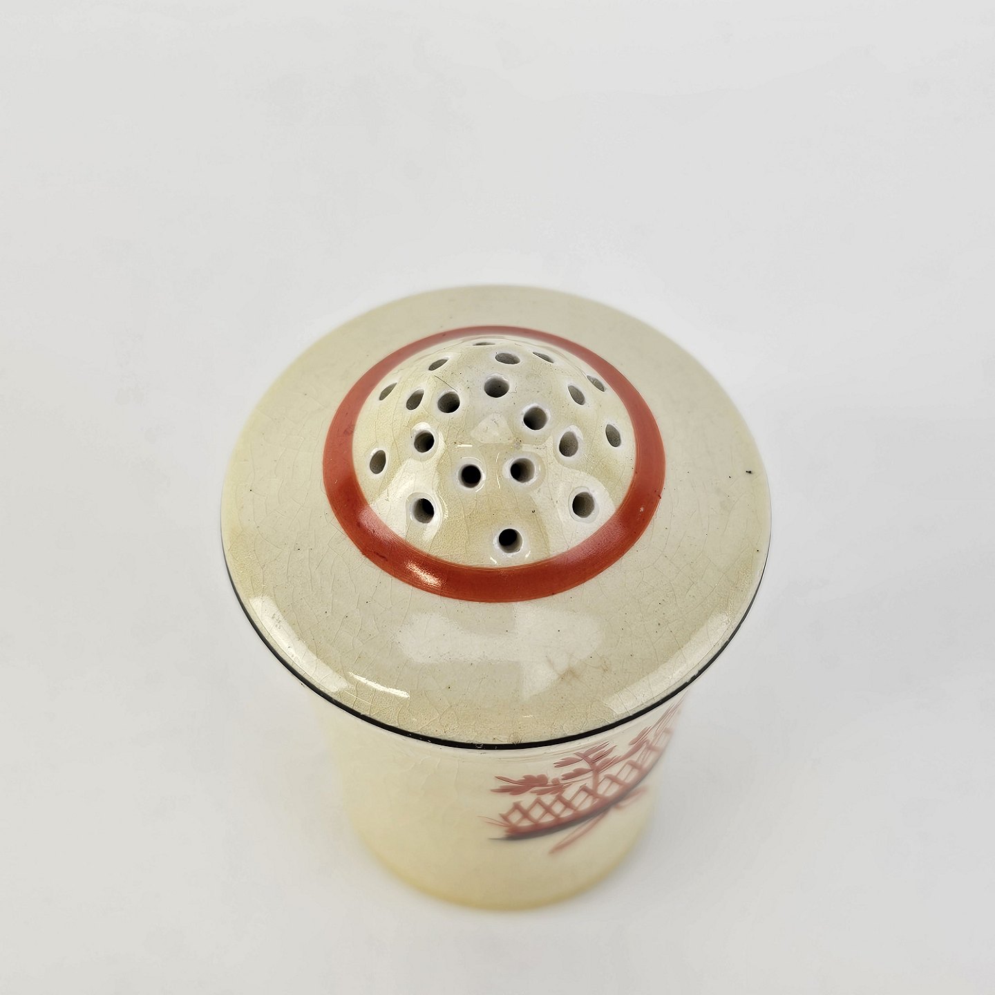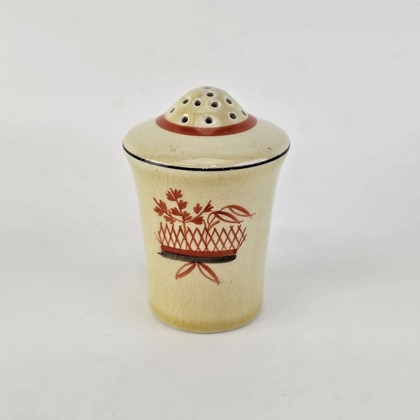 Beskrivelse: Saltbøsse eller peberbøsse i fajance fra stellet Mariager