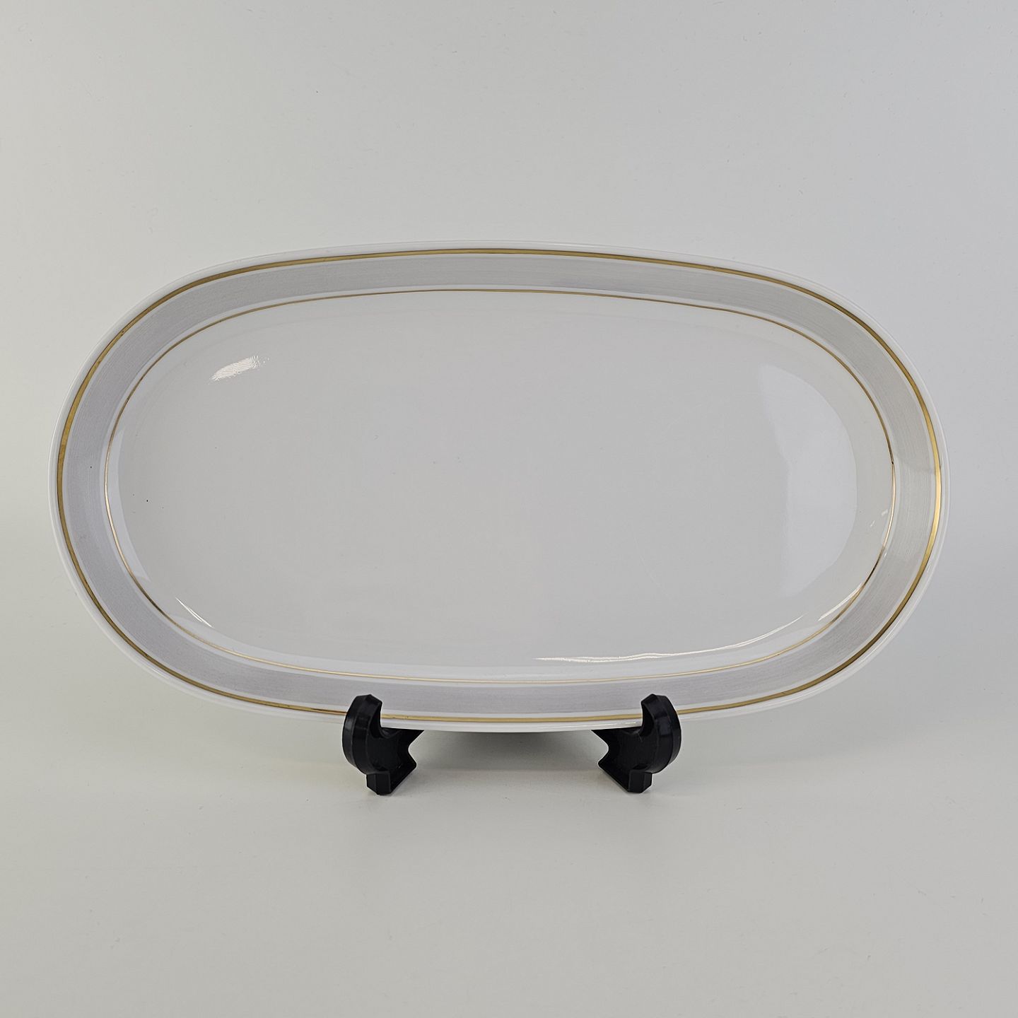 Beskrivelse: Aflangt fad i porcelæn fra stellet Tiber