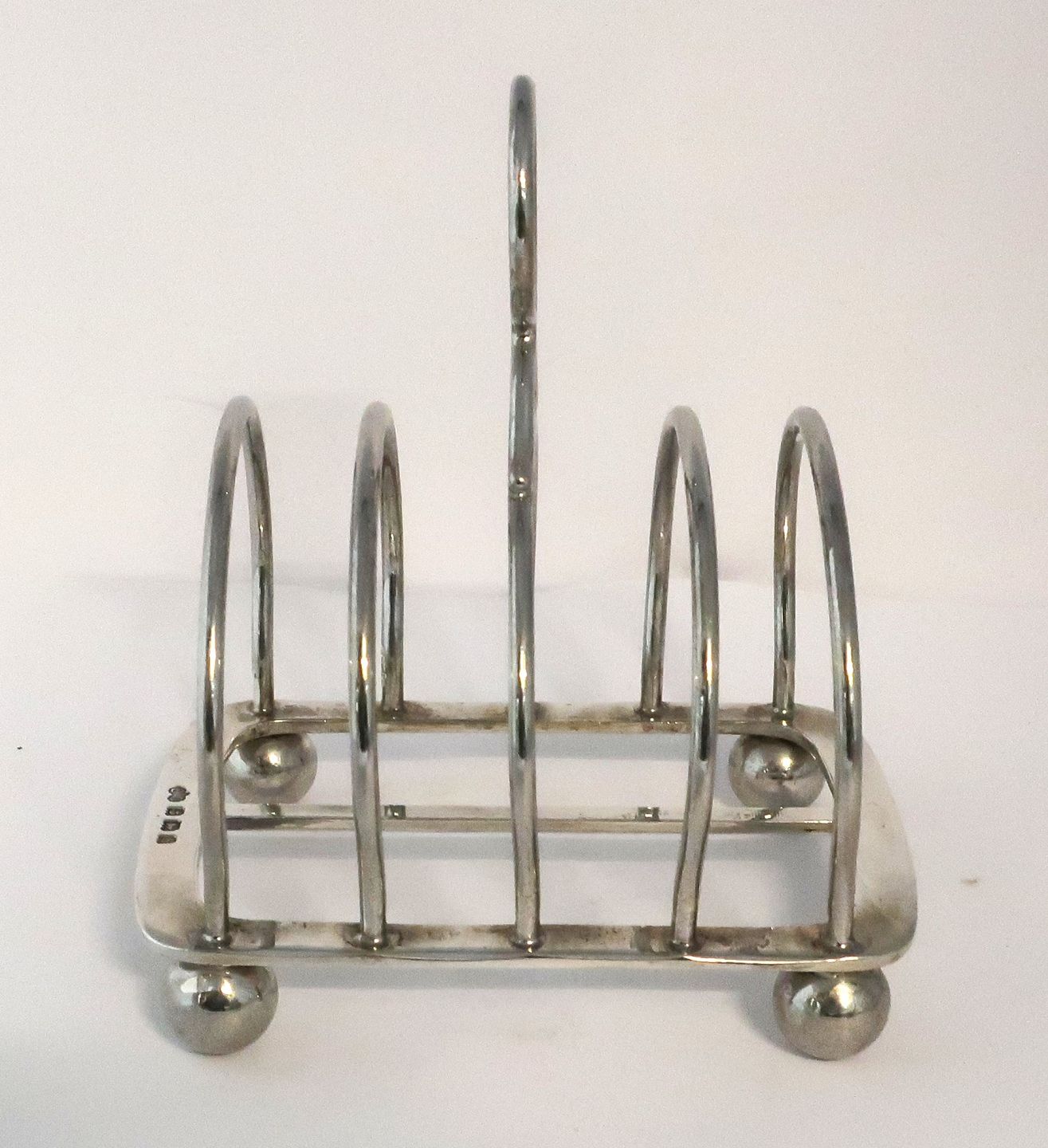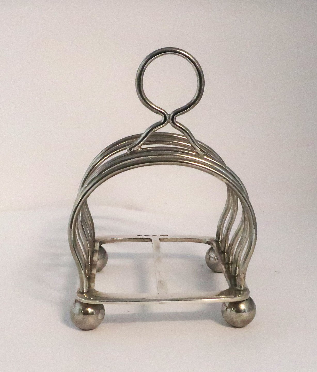 Description: Elkington. Englischer Toasthalter aus Sterlingsilber (925). Länge 12 cm. Höhe 13,5 cm. Hergestellt in Birmingham 1907.