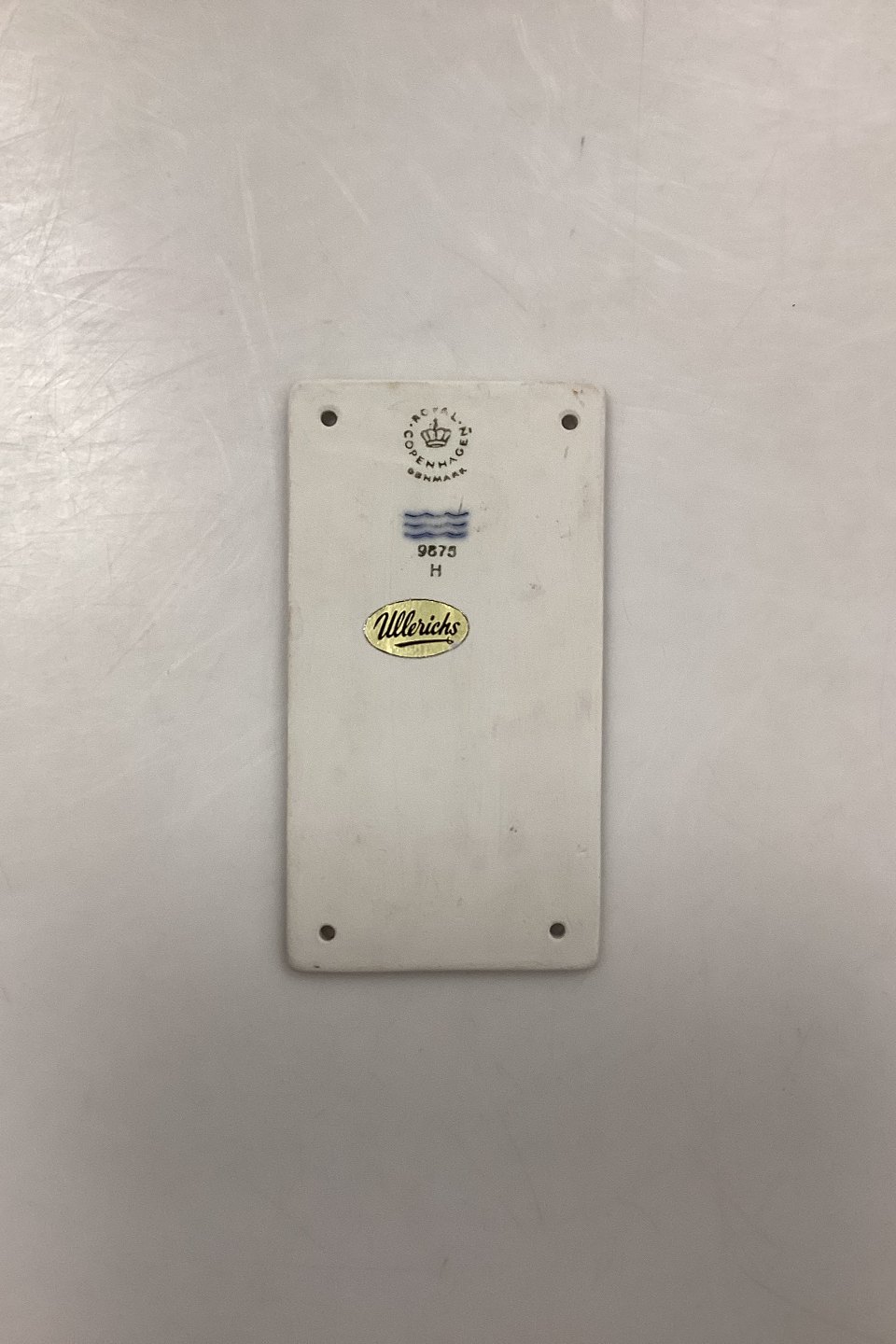 Beskrivelse: Royal Copenhagen Toiletskilt Herre No. 9875 H. Måler 11,8 cm x 6,4 cm / 4,64 in. x 2,52 in. 1. Sortering.