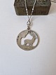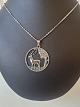 Beskrivelse: Halskæde og vedhæng i sølv, vedhænget er udformet som skovparti med krondyr