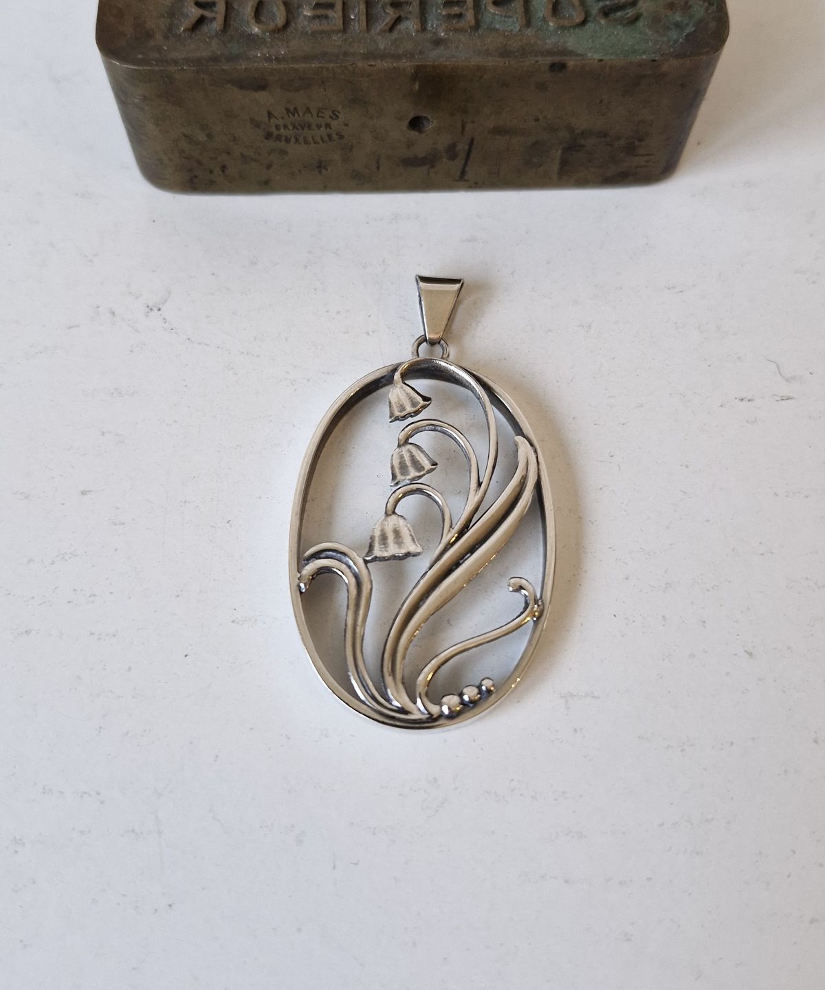 Hugo Grün sølv vedhæng dekoreret med liljekonval