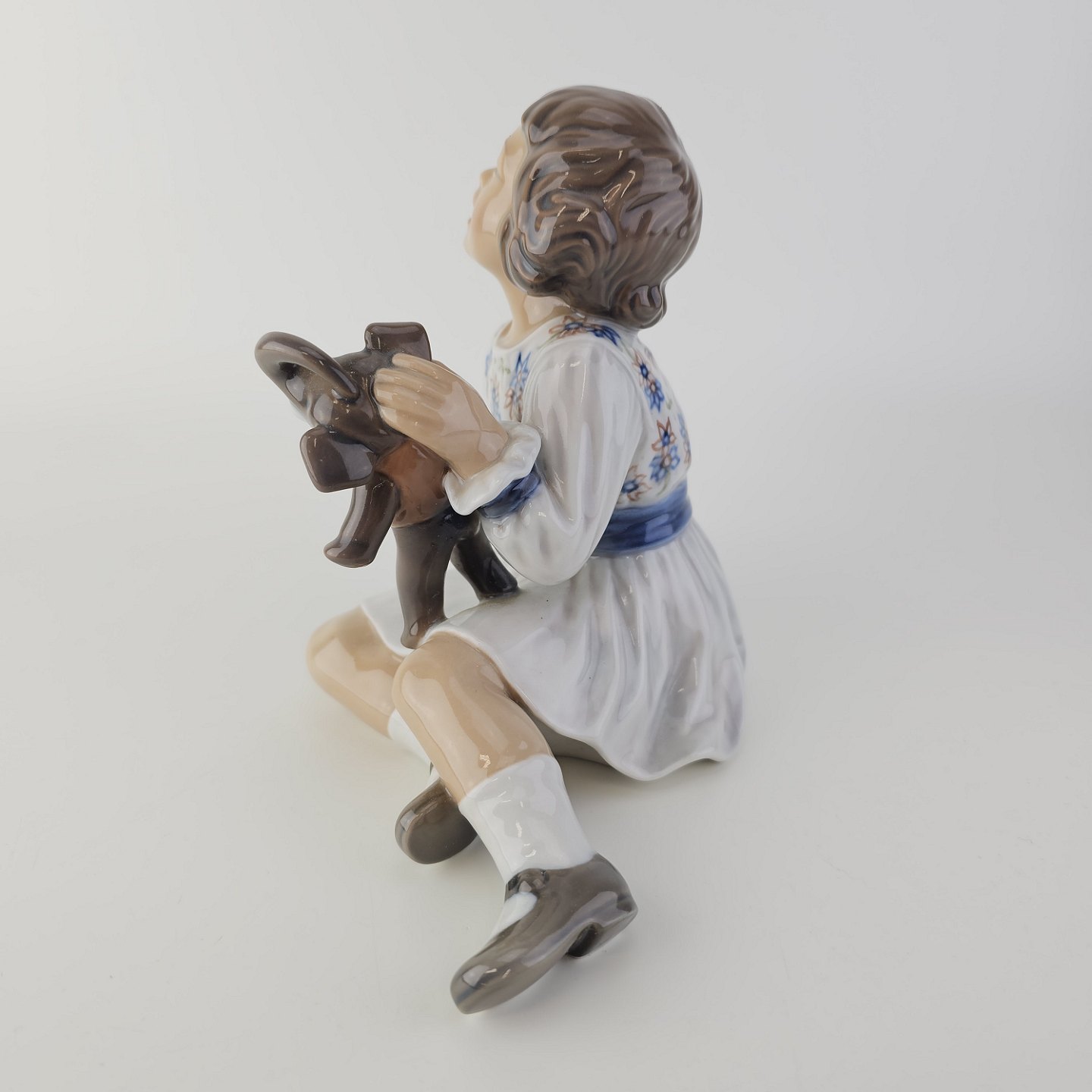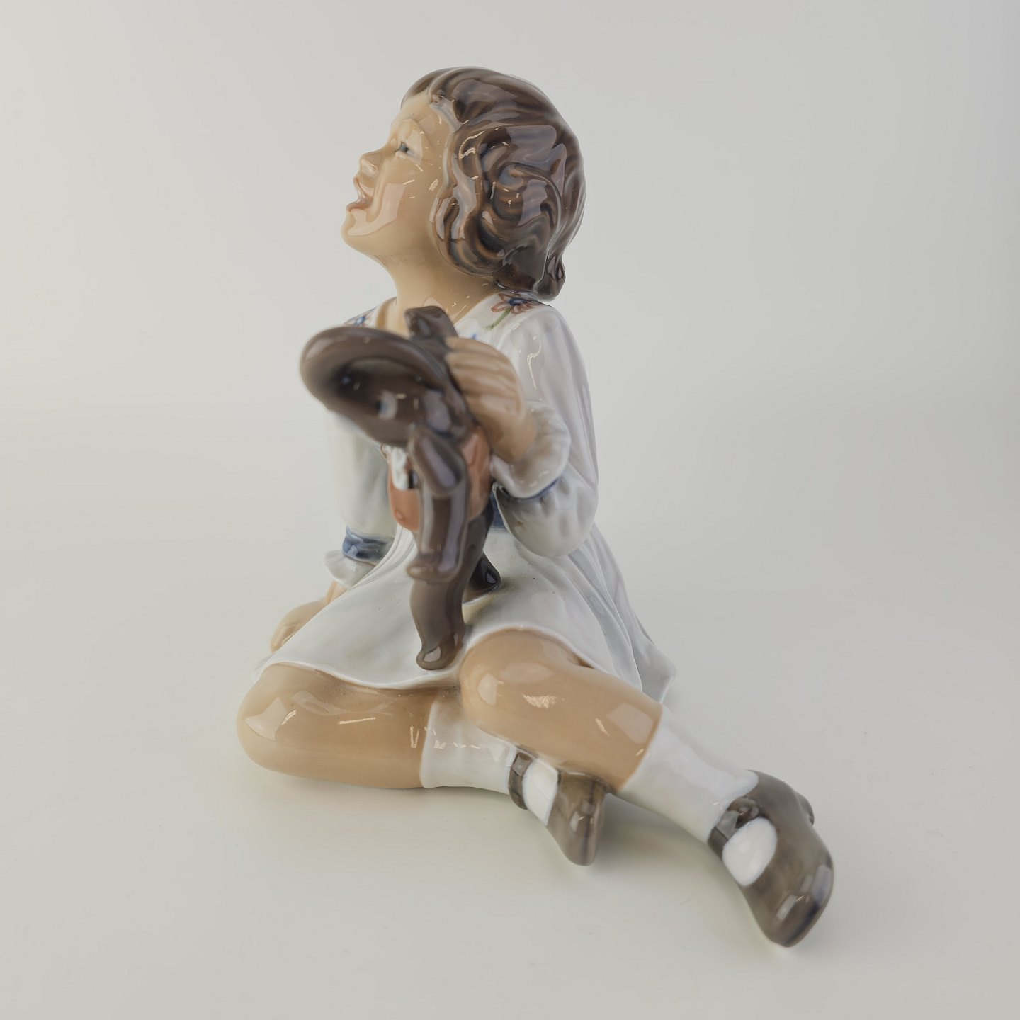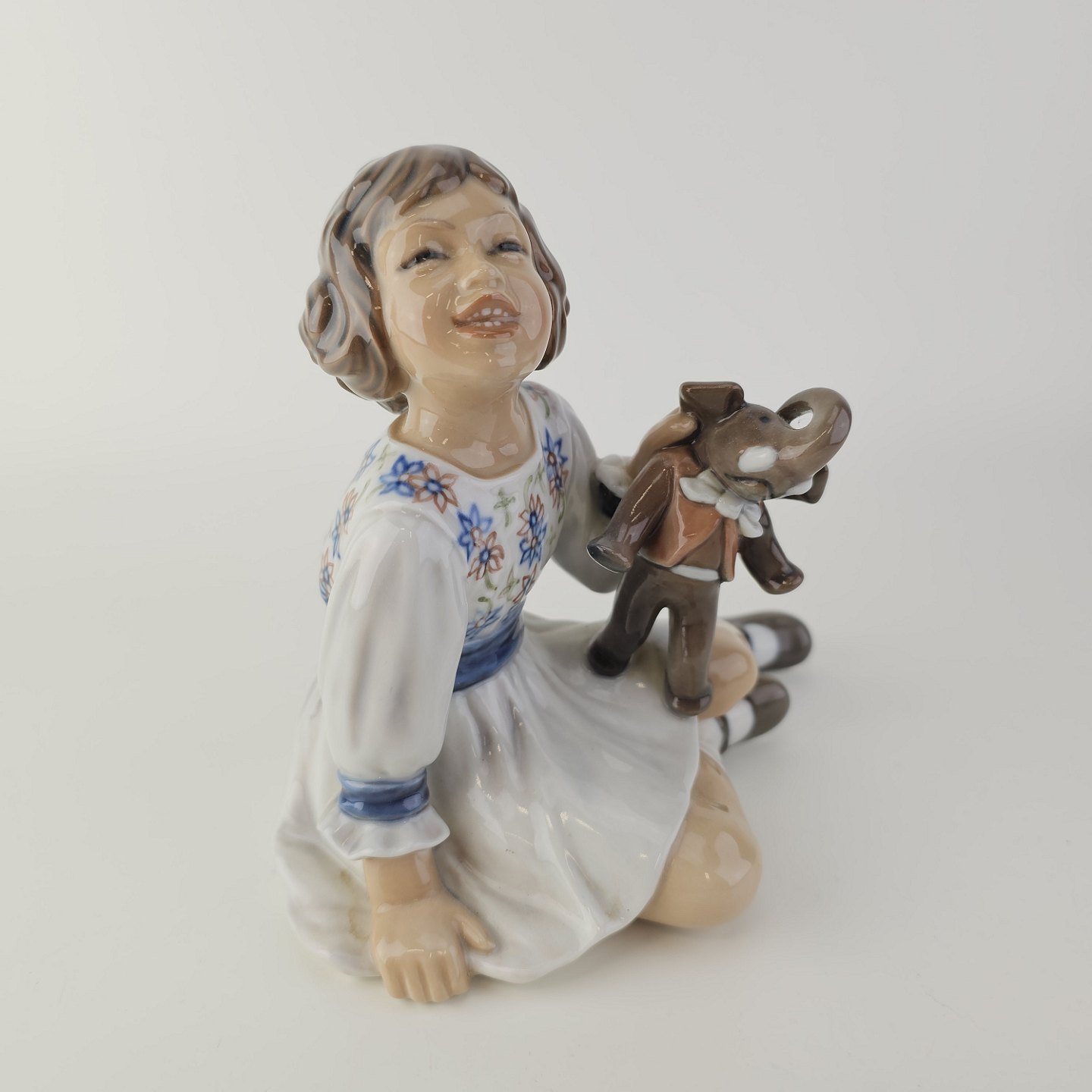 Beskrivelse: Figur i porcelæn med motiv af en pige med en legetøjselefant