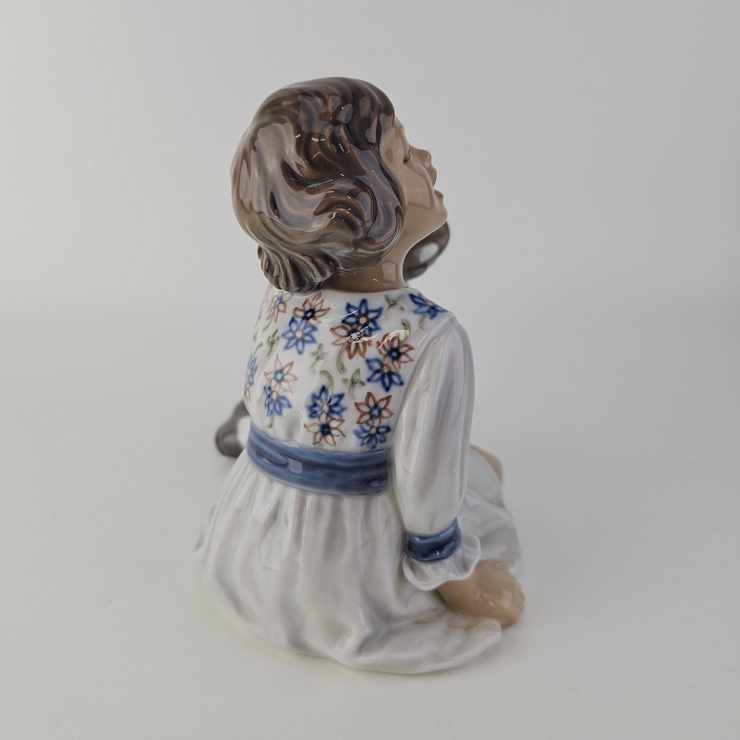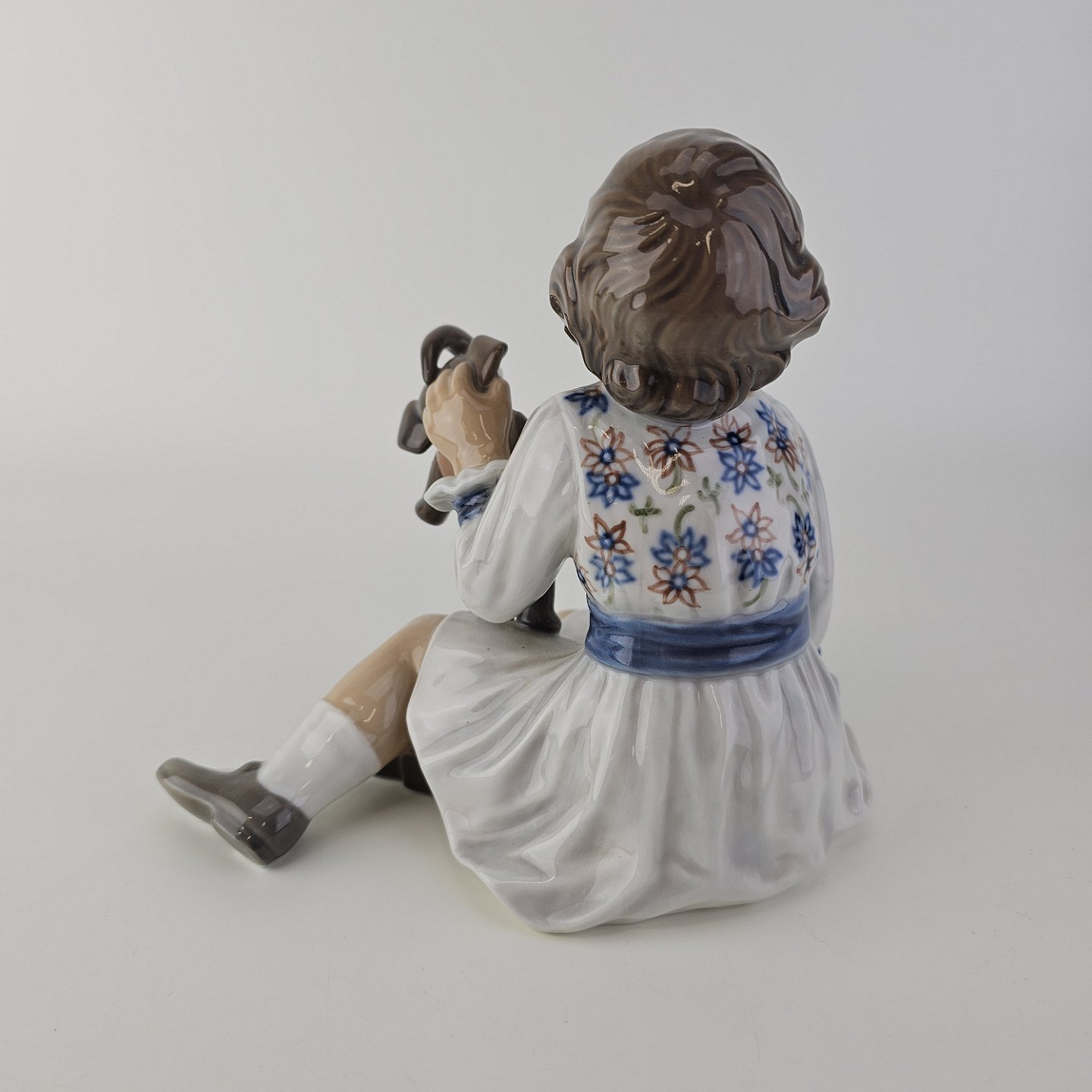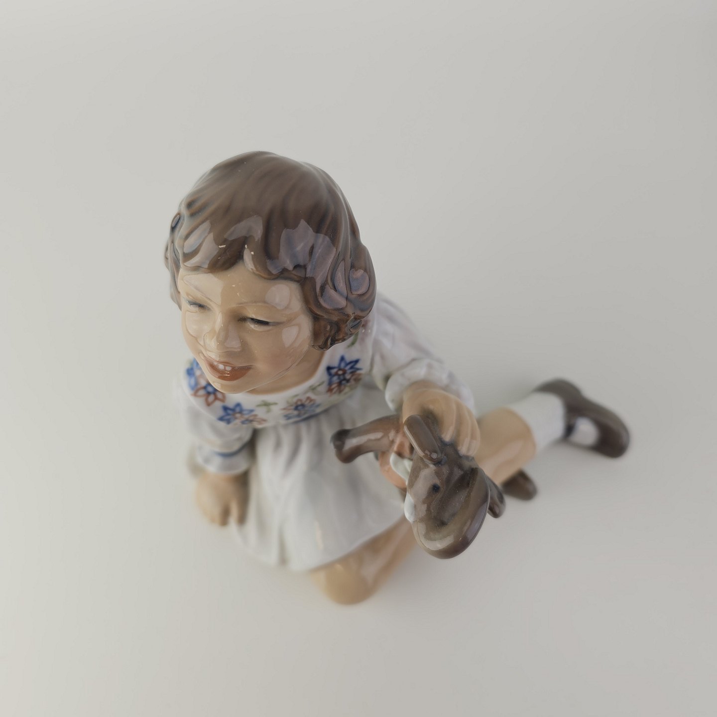 Beskrivelse: Figur i porcelæn med motiv af en pige med en legetøjselefant