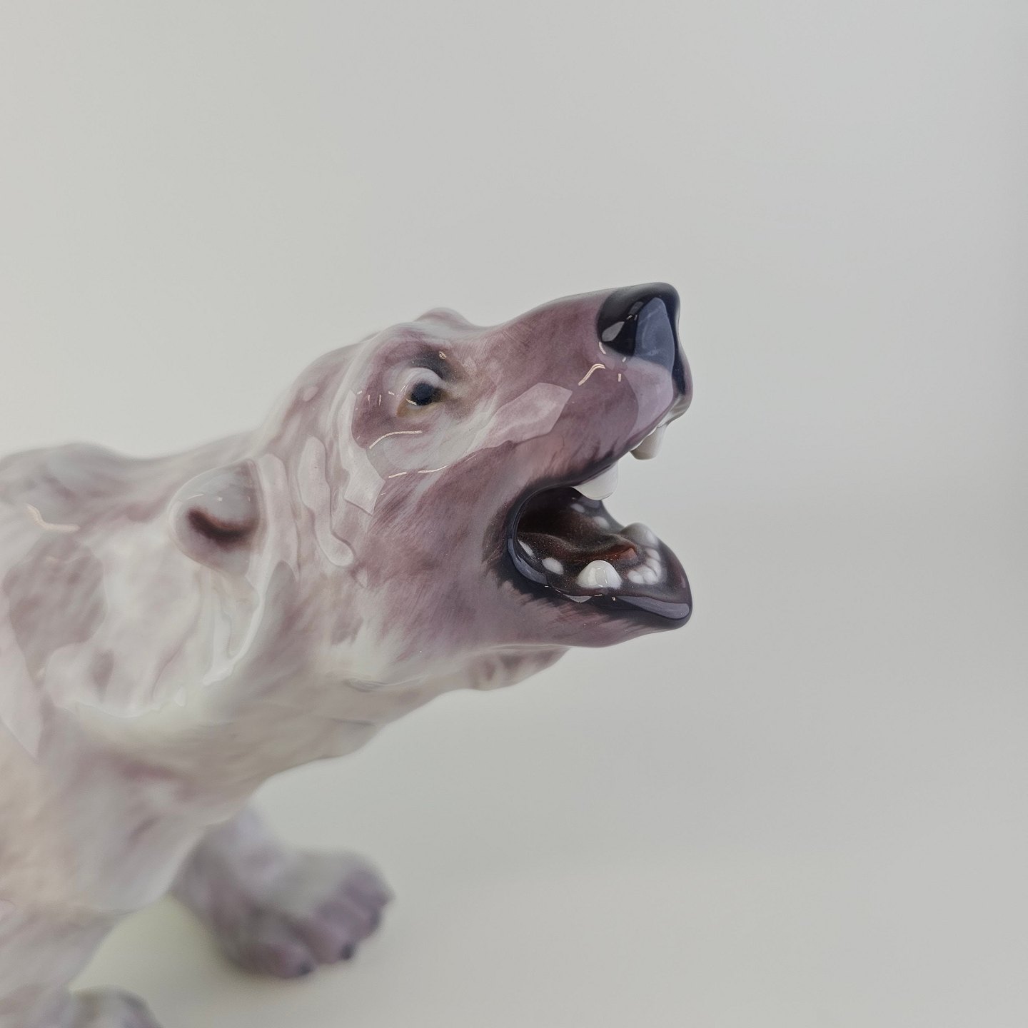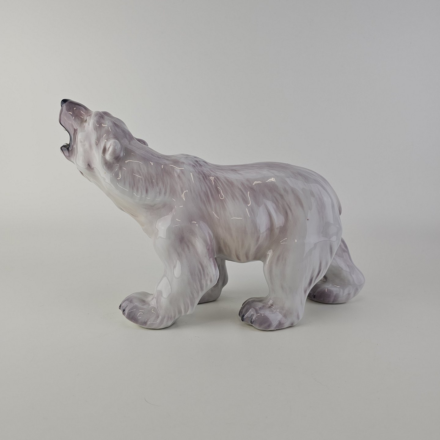 Beskrivelse: Figur i hvidt porcelæn med motiv af en brølende isbjørn