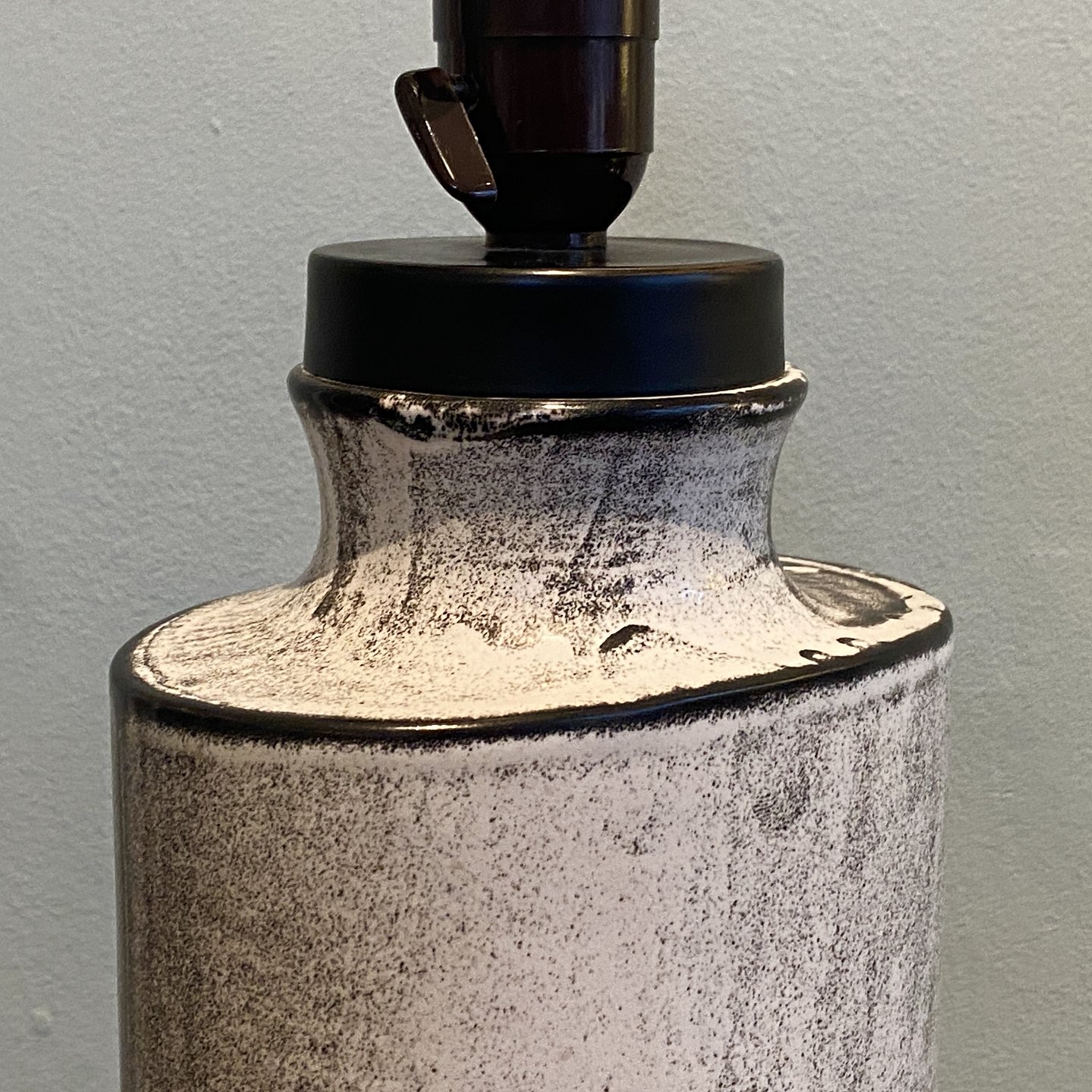 Stor oval bordlampe med askegrå glasur.