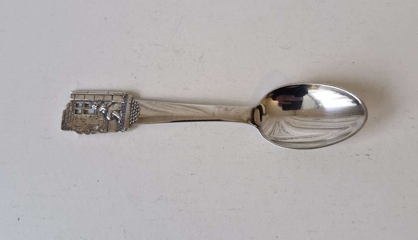 Beskrivelse: H.C.Andersen barneske i sølv - "Den lille pige med svovlstikkerne"