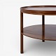 Rundt sofabord i patineret mahogni m. underliggende hylde. Mærket fra producent.