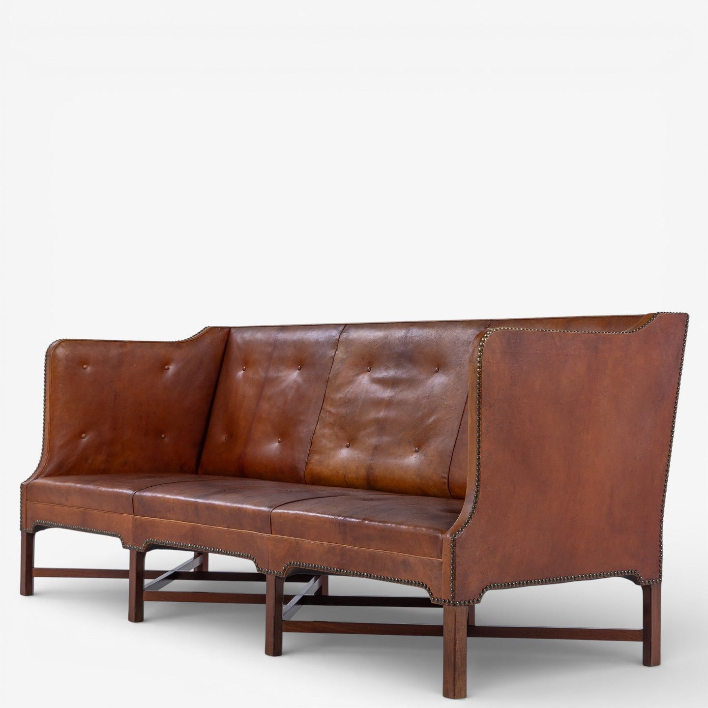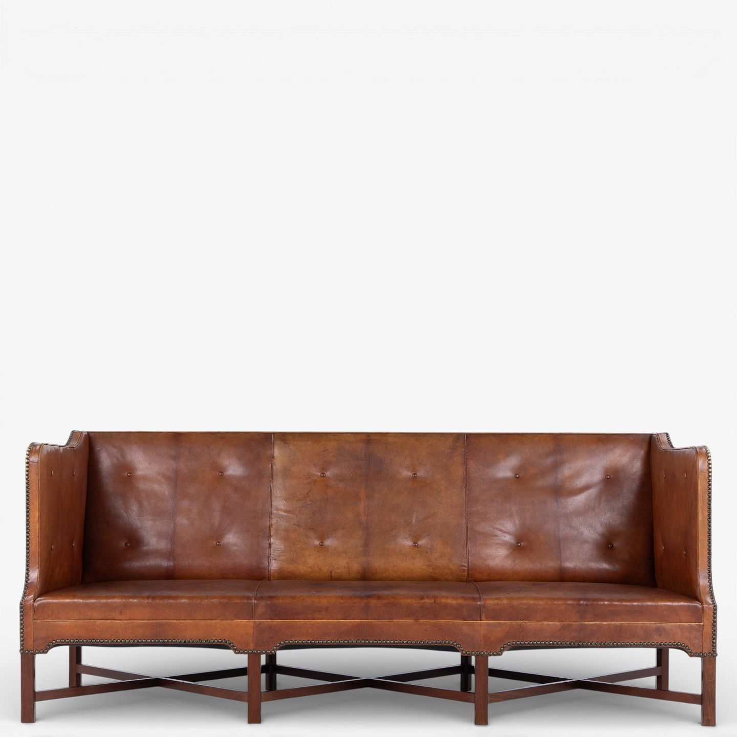 KK 4118 - 3 pers. sofa i patineret nigerskind på krydsstel i cuba-mahogni. Formgivet i 1930.