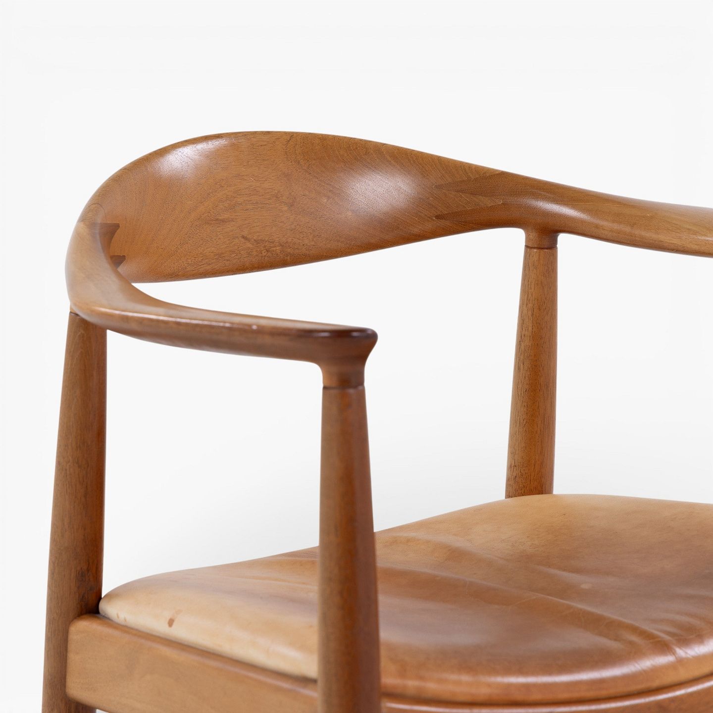 JH 503 - 'The Chair'-armstol i mahogni med sæde i patineret naturlæder. Mærket fra producent.