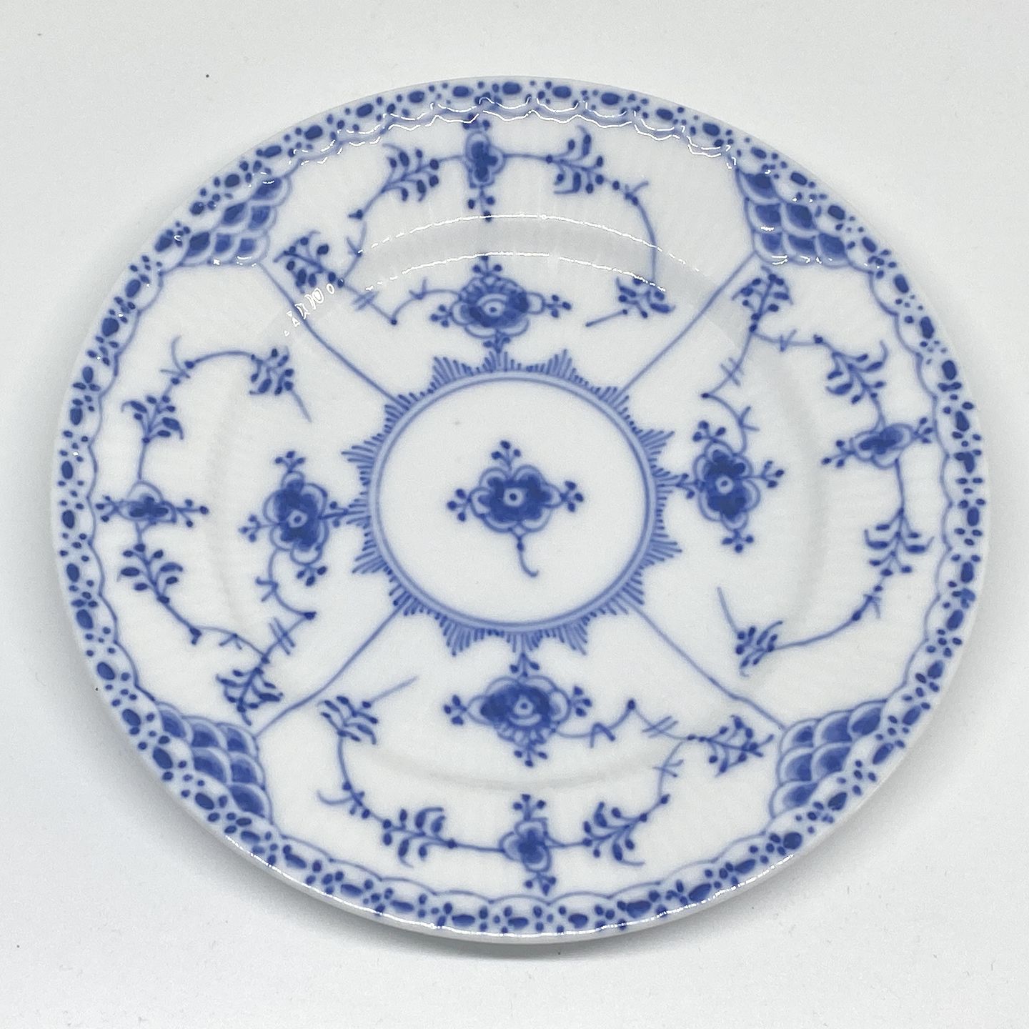 Description: Royal Copenhagen/Kgl. Blue Fluted Half Lace. Cake Plates Decoration number 1/575. Dimensions: Ø 15.8 cm.