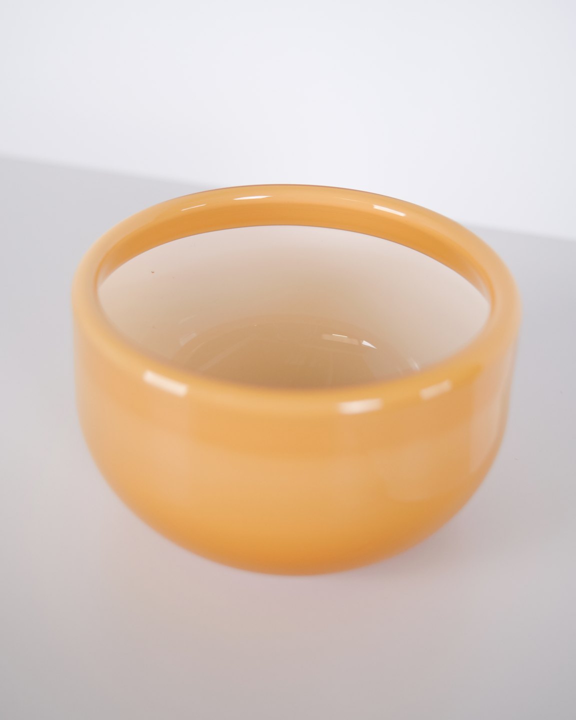 Beskrivelse: Glasskål fra Palet-serien designet af Michael Bang for Holmegaard. Skålen er udført i mundblæst glas i gul/karamel farvetone, kendetegnet ved Palet-seriens farvearbejde og enkle, funktionelle formsprog. Serien blev produceret hos Holmegaard i anden halvdel af det 20. århundrede og er i dag efterspurgt inden for dansk glasdesign.