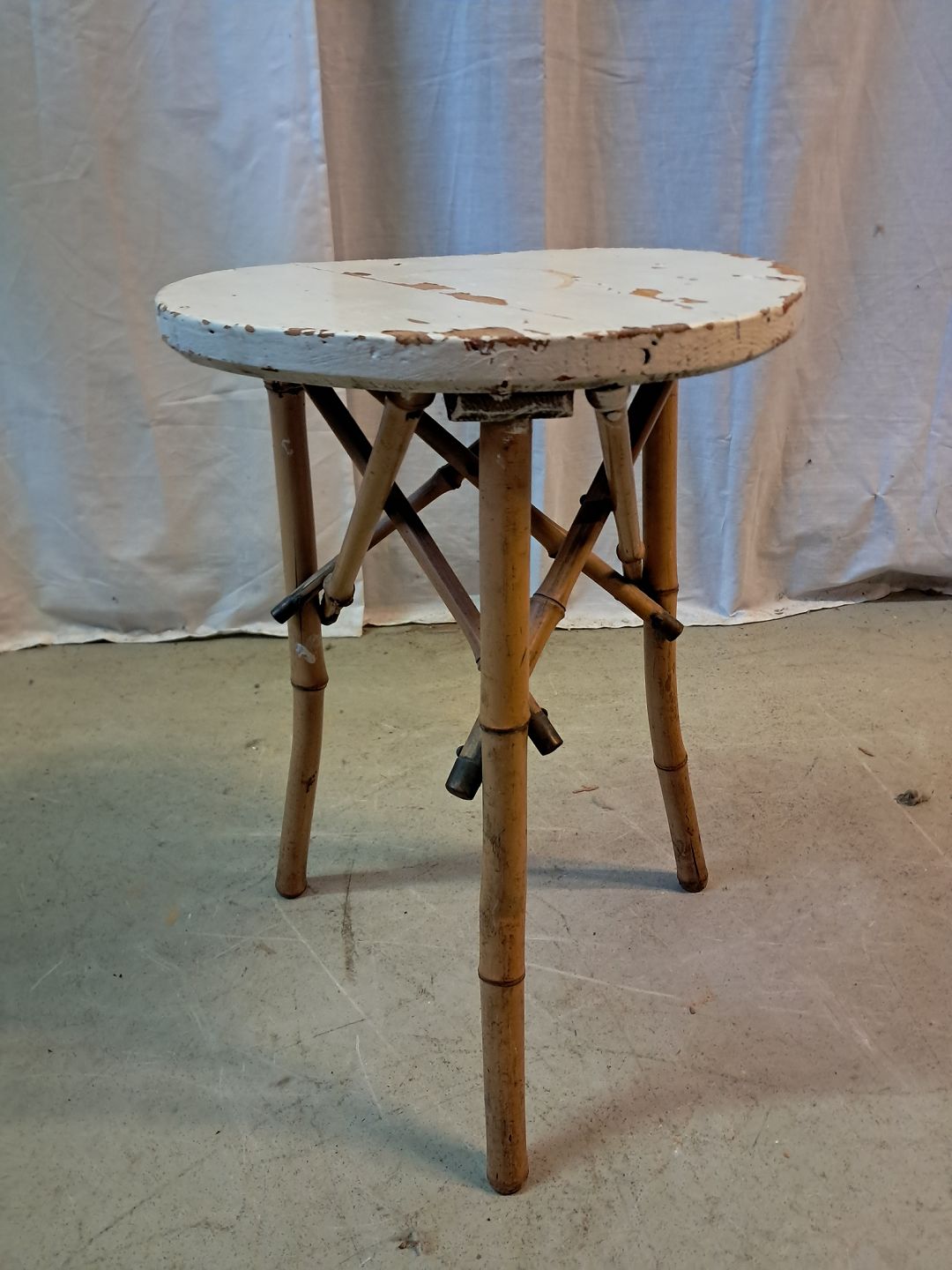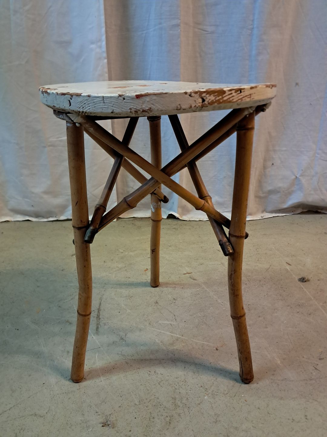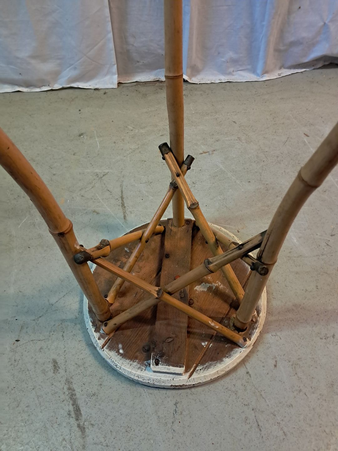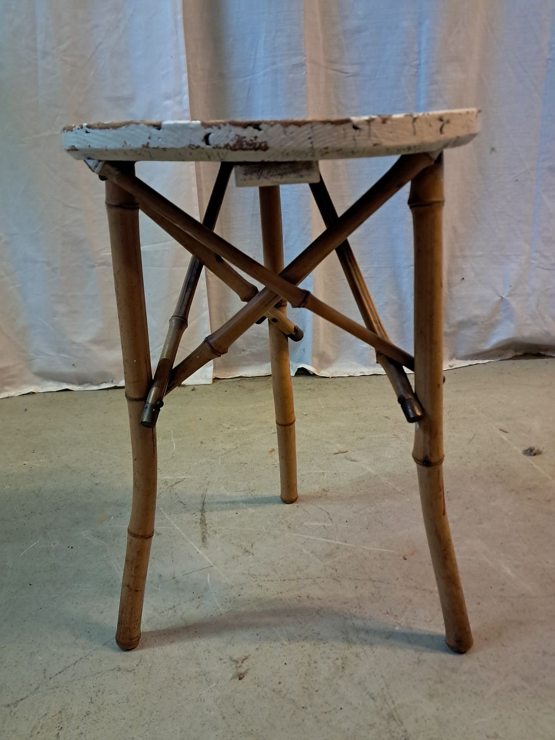: Bambusbord med malet plade, fra 1930erne.