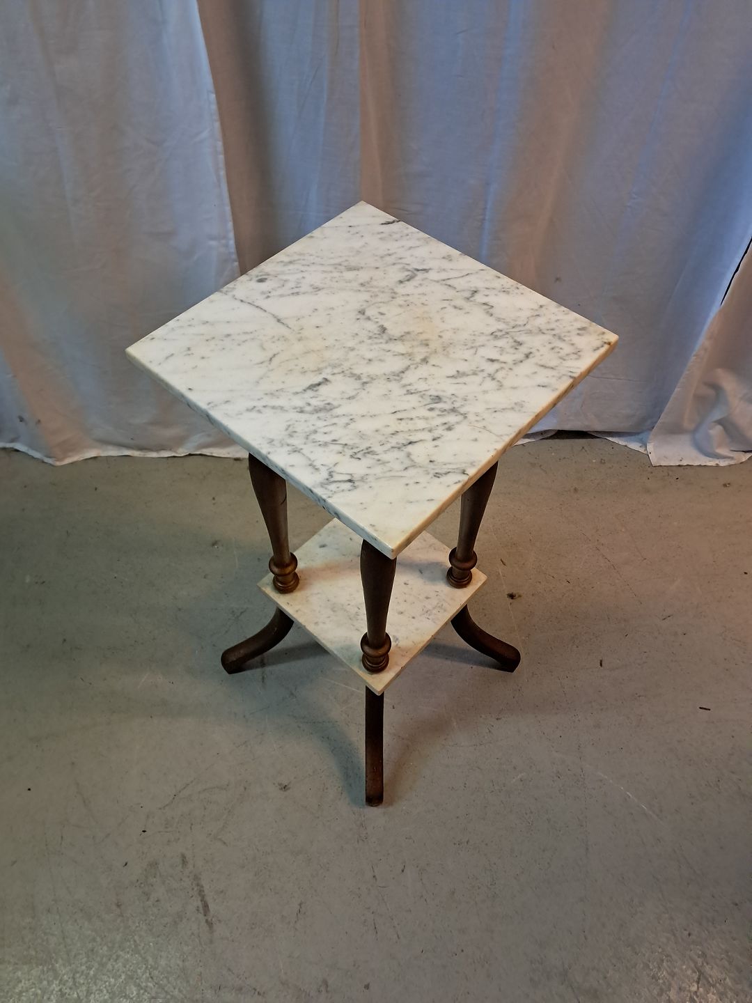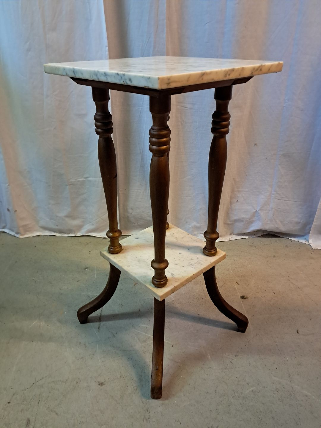 Beskrivelse: Guldmalet piedestal med marmorplader, fra 1920erne.