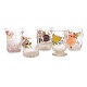 Collection of five enamel decorated glasses circa 1860-80. H: 9-10cm
