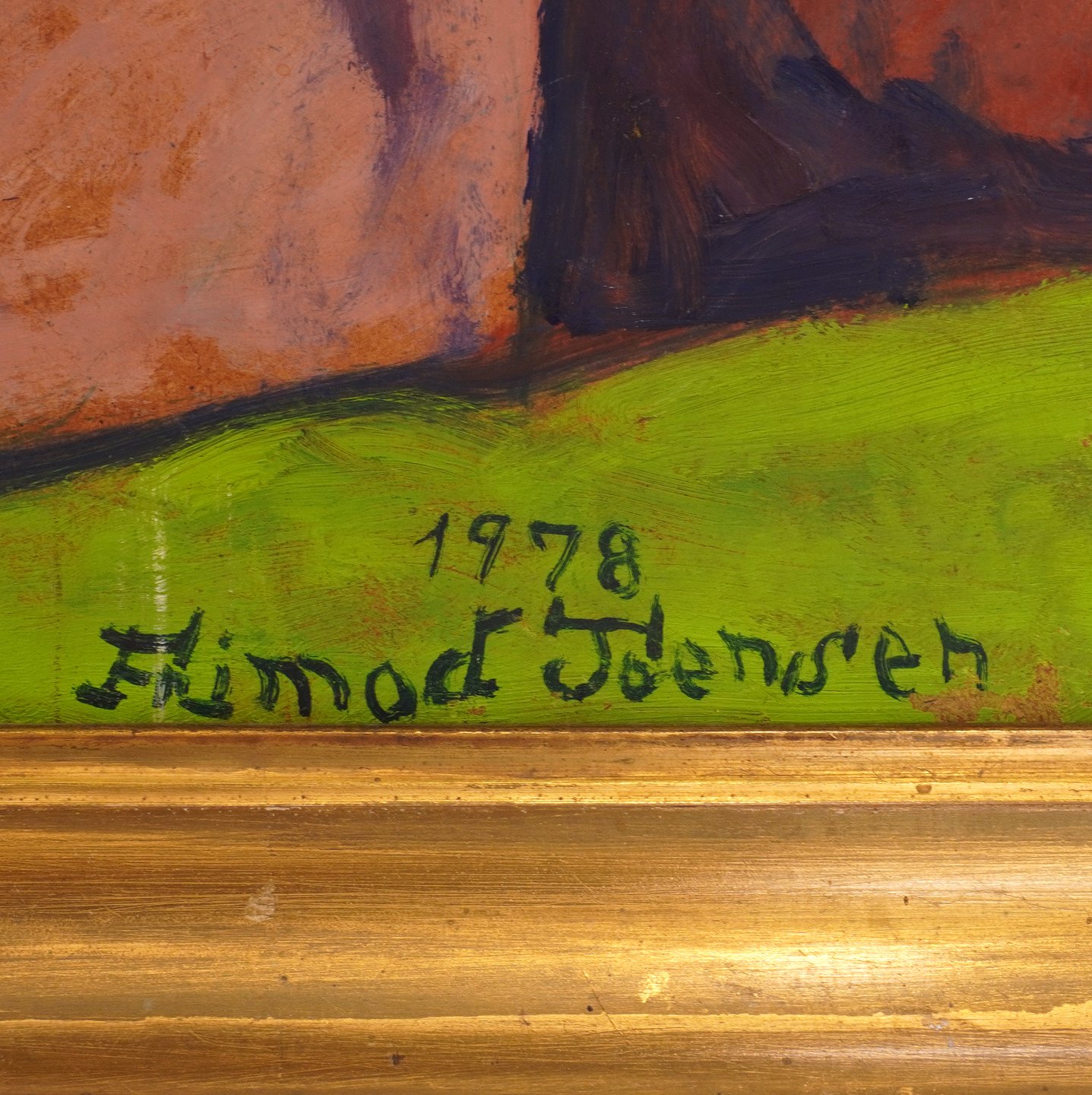 Frimod Joensen maleri Færøerne. Frimod Joensen, 1915-97, olie på masonit. Landskab Færøerne signeret og dateret 1978. Lysmål: 80x119cm. Med ramme: 92x131cm