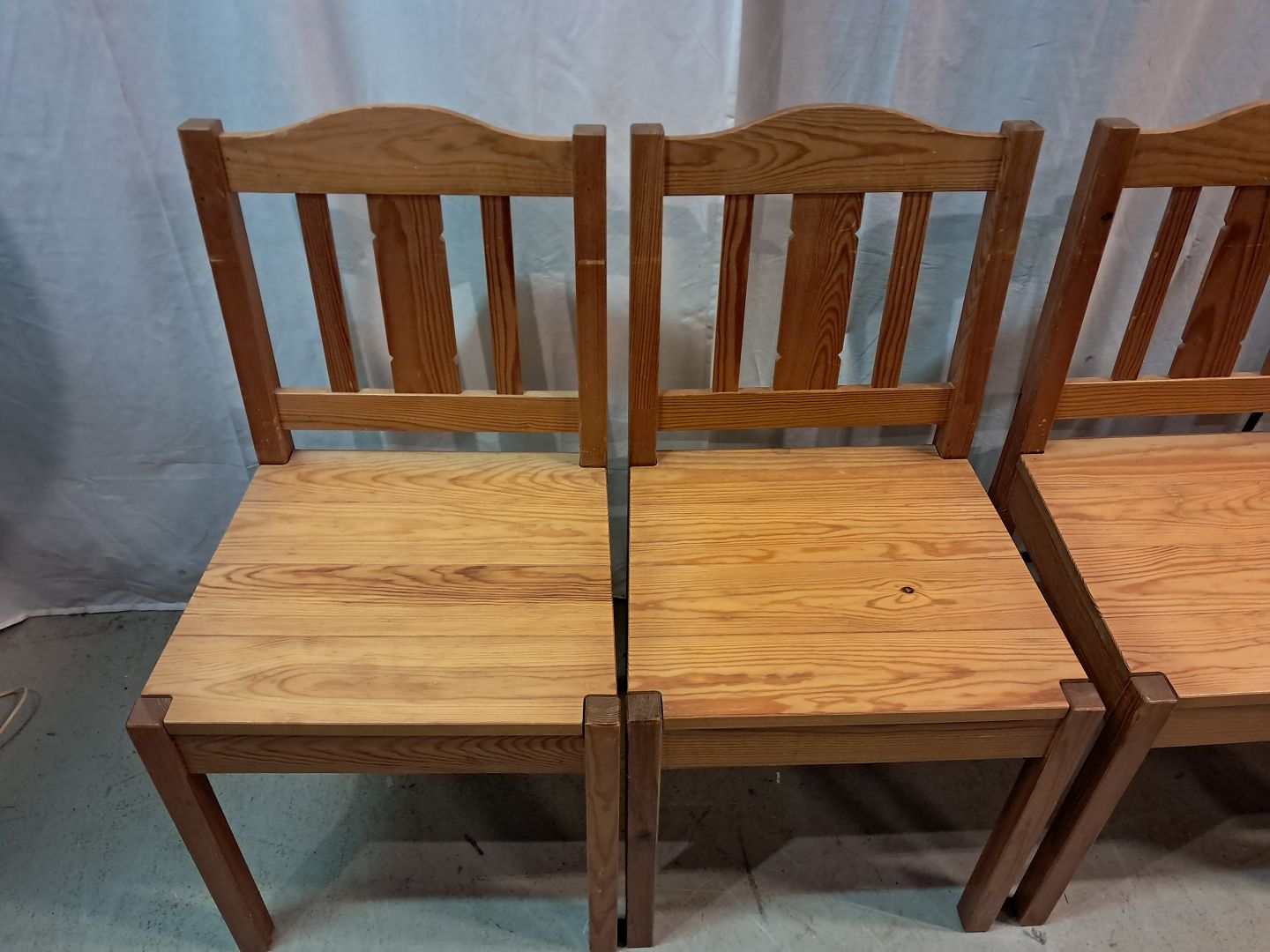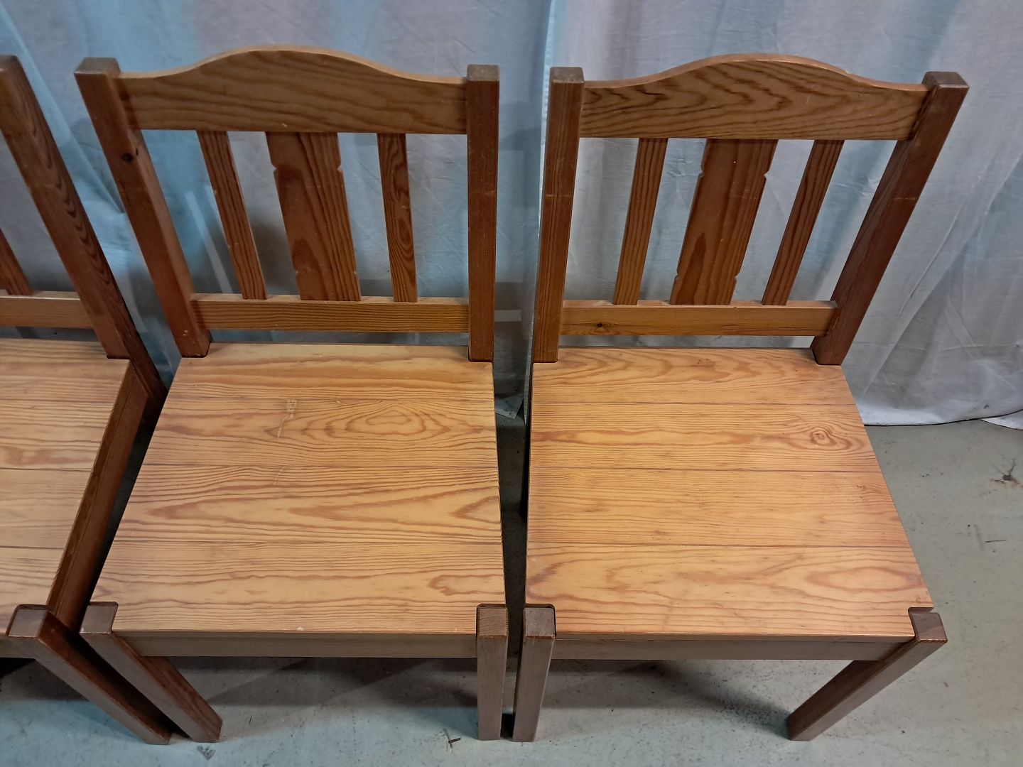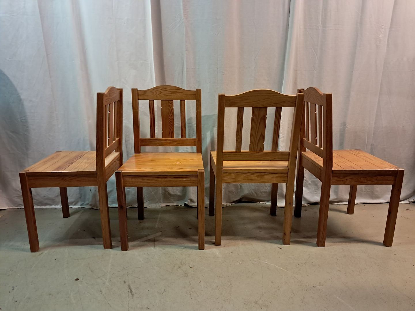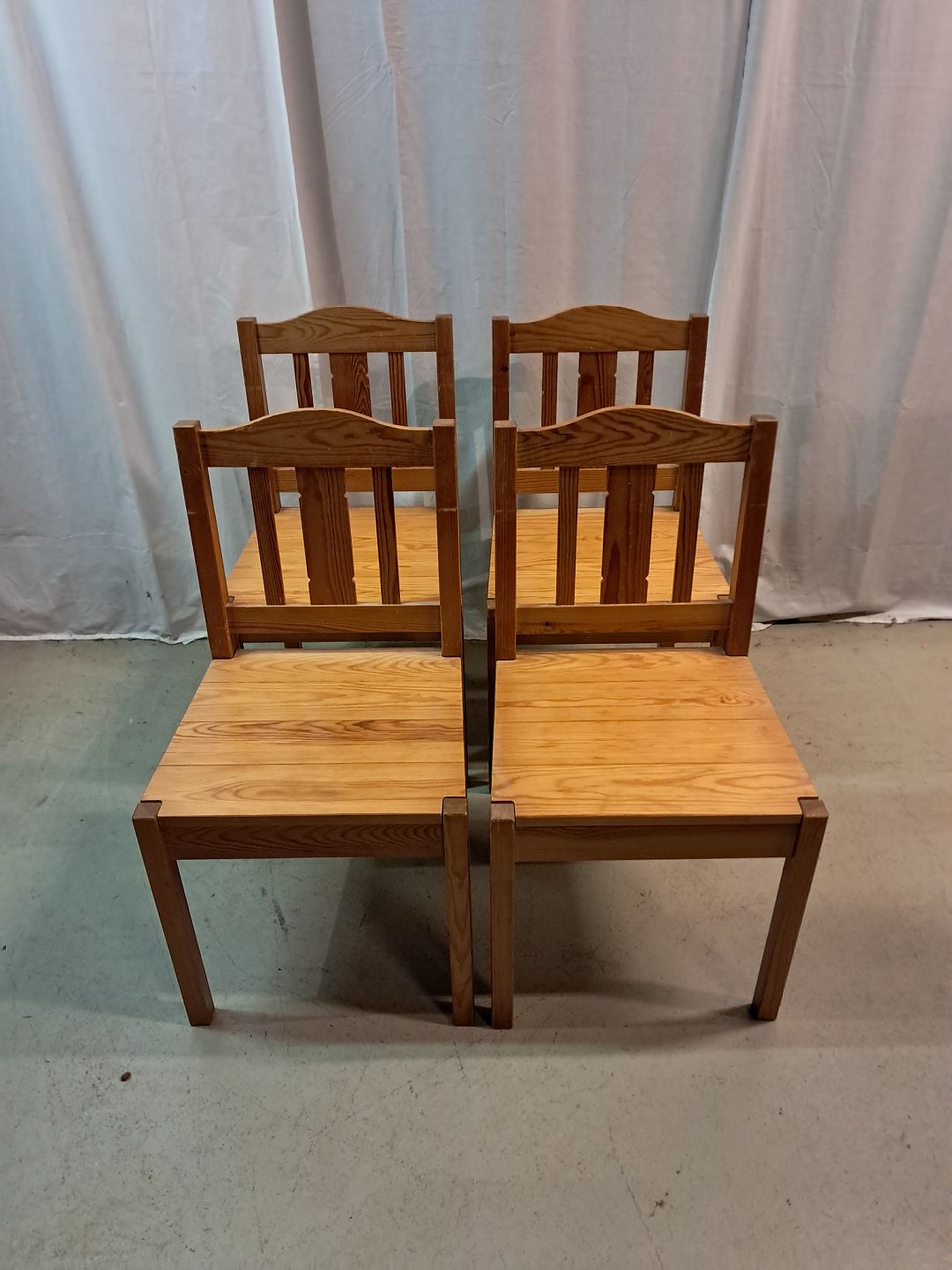 Beskrivelse: 4 Stole i massivt fyrretræ, fra 1980erne.
