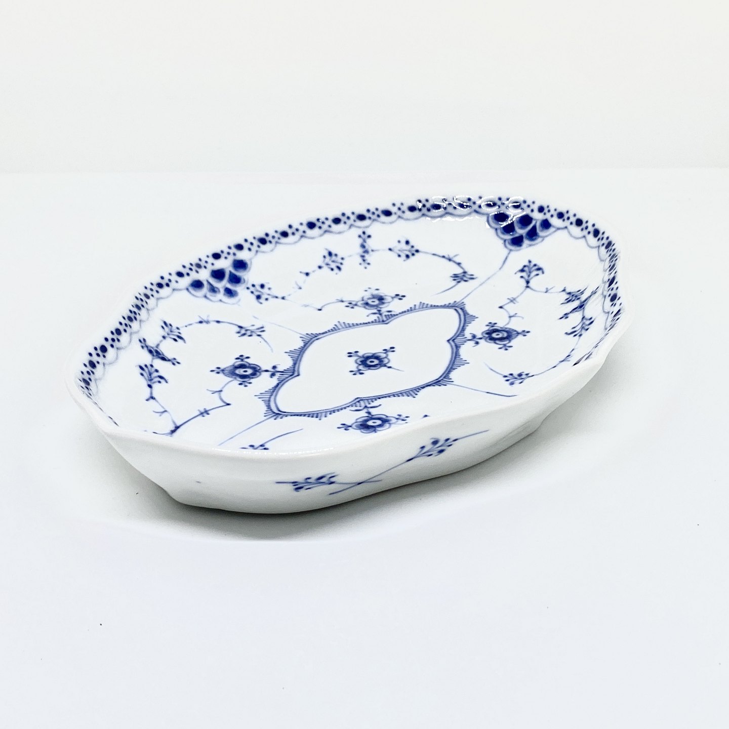 Beskrivelse: Royal Copenhagen/Kgl Musselmalet halvblonde oval asiet.