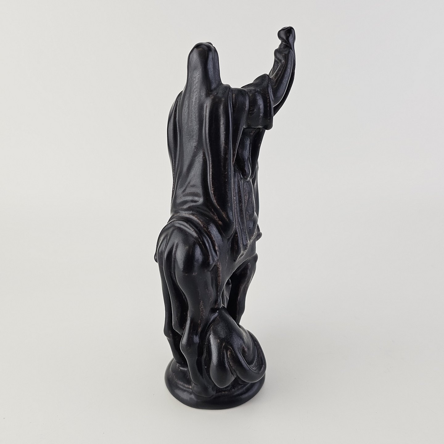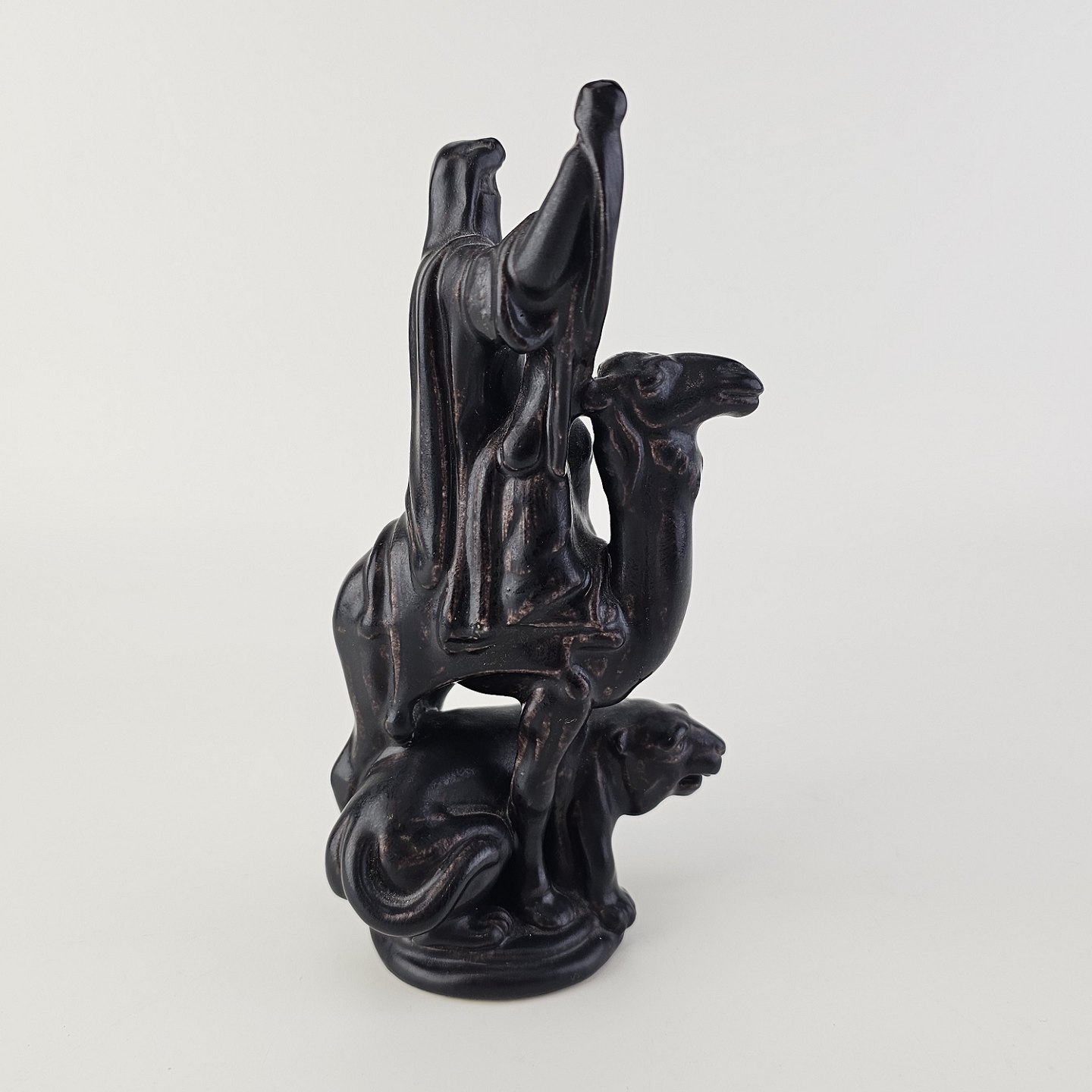 Beskrivelse: Meget sjælden figur i porcelæn fra et sæt skakbrikker med motiver af Richard Løvehjertes tempelriddere og Saladins saracenere. Denne figur er dronningen fra saracenerne og har motiv af en kvinde iklædt slør på en kamel