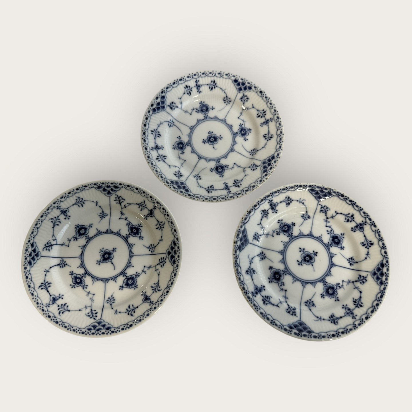 Beskrivelse: Royal Copenhagen, Musselmalet, Halvblonde, Kagetallerken #1/575, 16cm i diameter, 3.sortering / medarbejdersortering *Lidt sorte prikker under glasuren langs kanten ellers pæn stand*