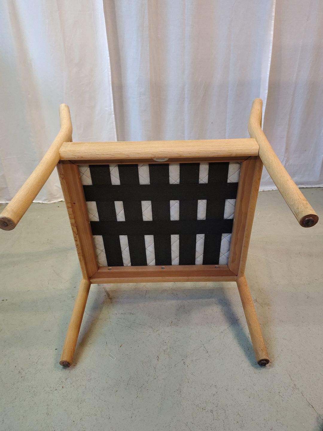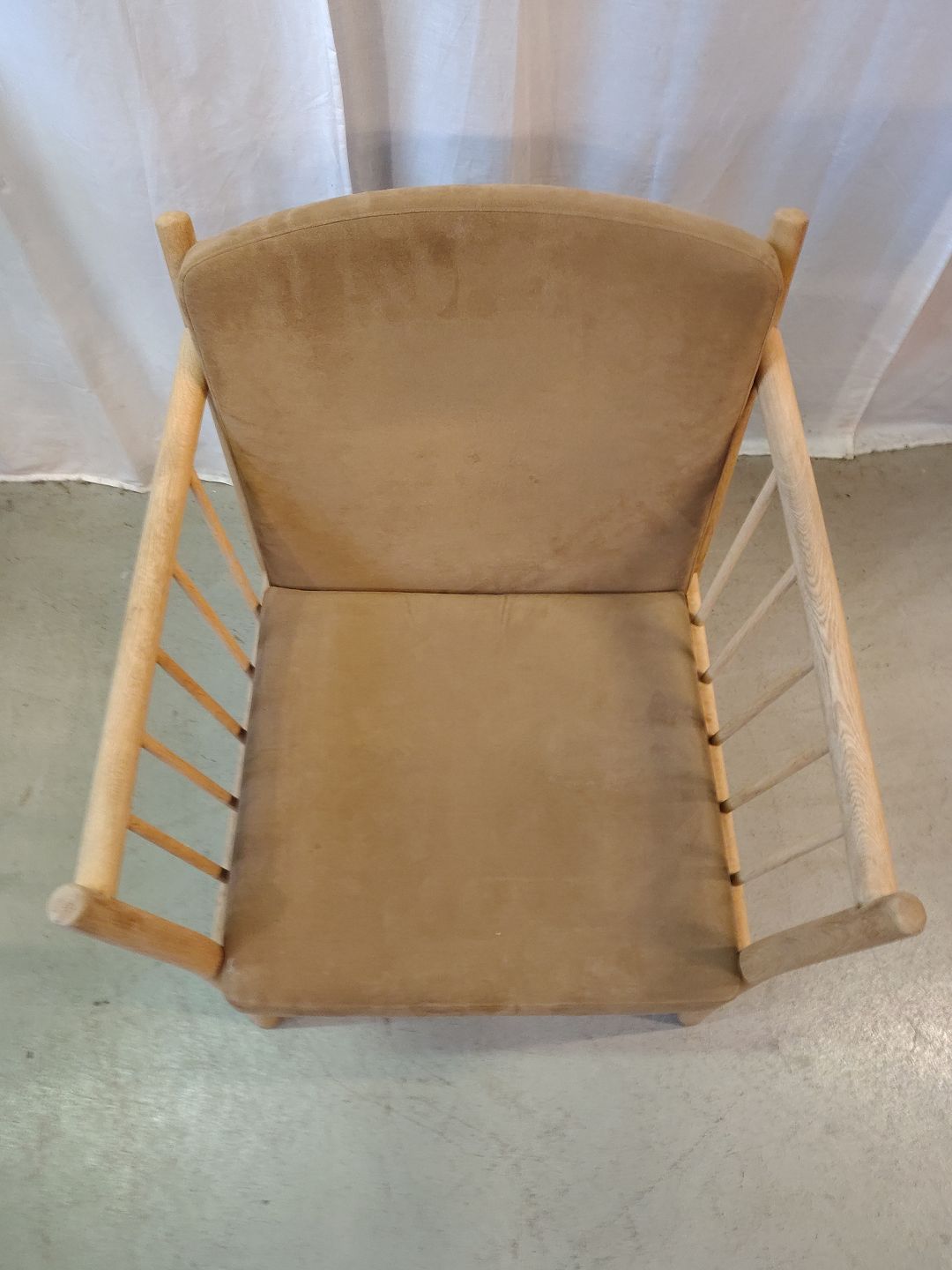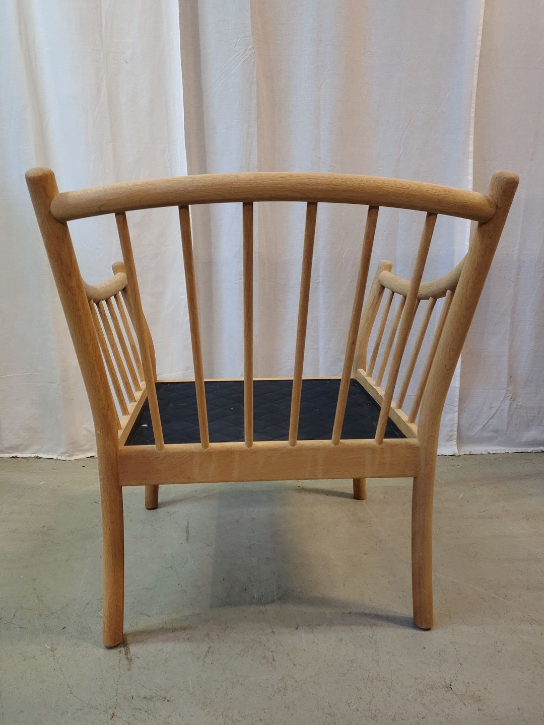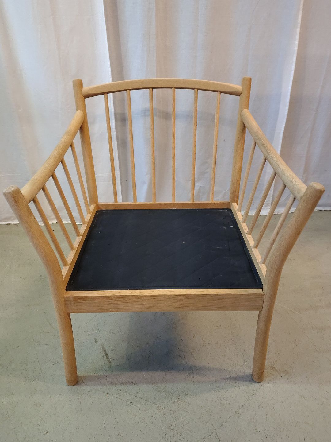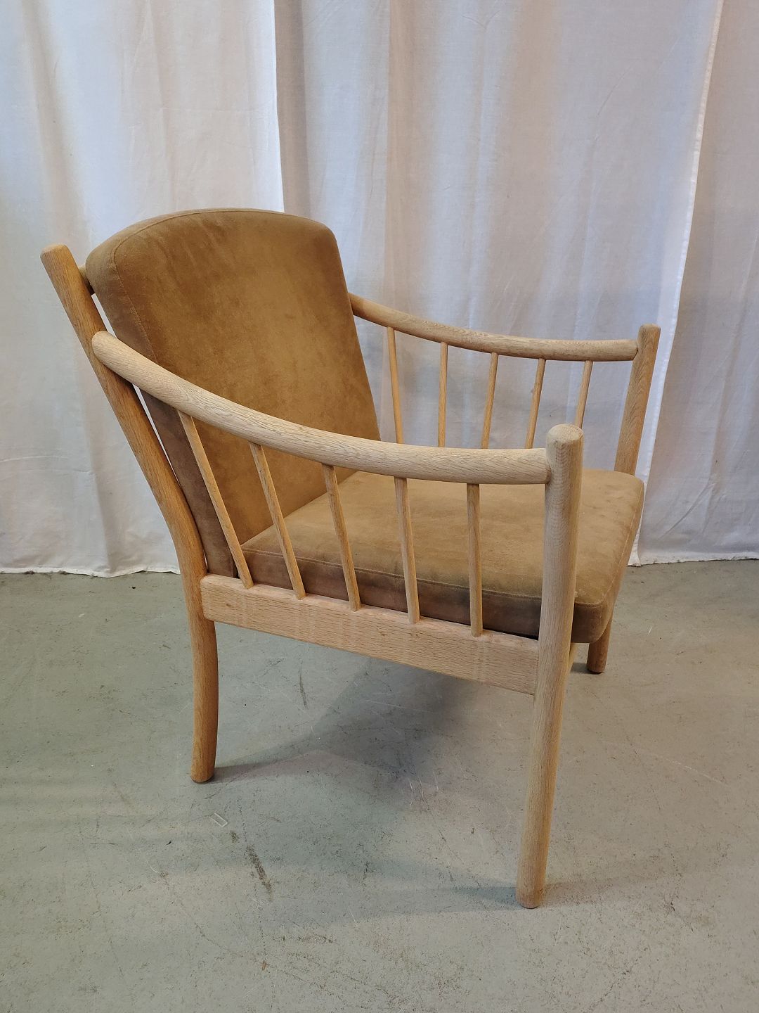 Beskrivelse: Lænestol i massivt egetræ med kunst rugskind, fra 2000erne.
