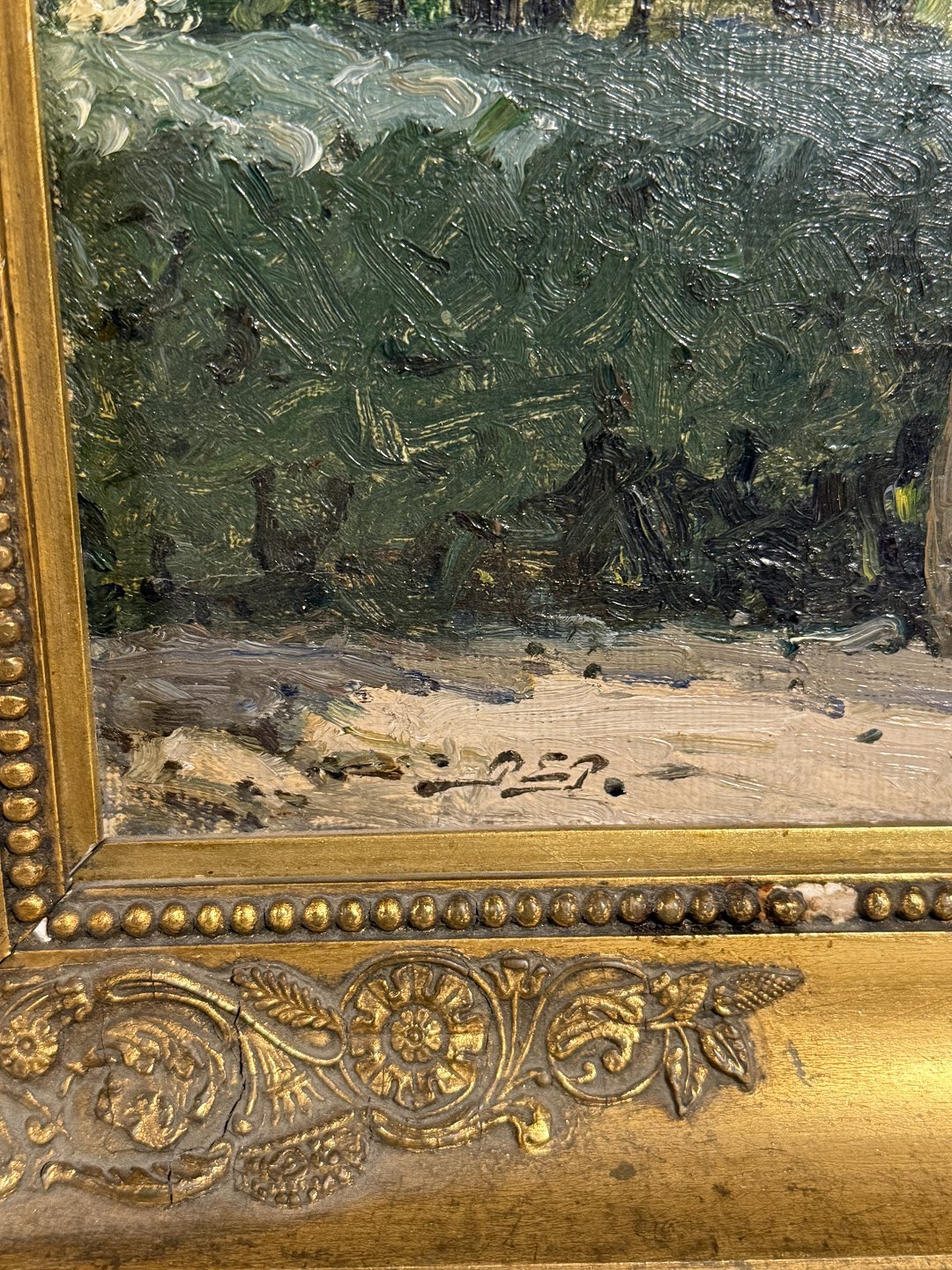 Description: Peter Elias Petersen (1859 - 1950), Oil painting on canvas, Backyard motif probably from Copenhagen, signed P.E.P. and inscribed P.E.Petersen 1922, Dimensions: 39x45cm *A few small chips on the frame otherwise fine condition*