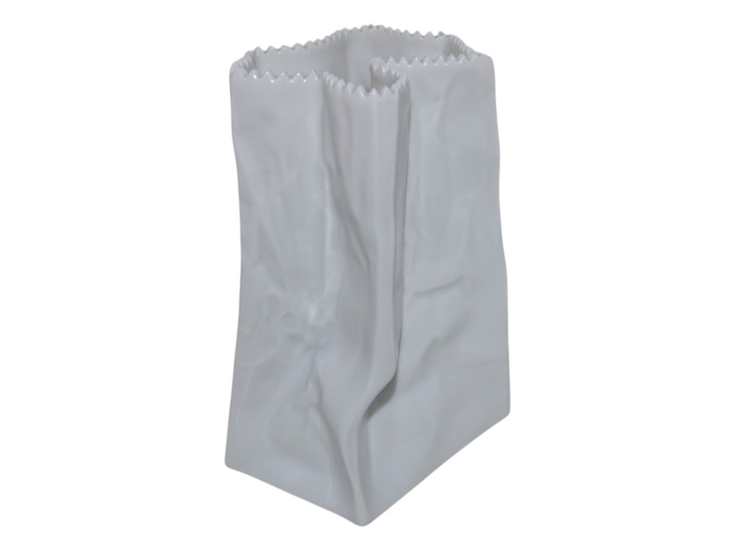 Beskrivelse: Rosenthal porcelæn, hvid papirspose vase desginet af Tapio Wirkkala fra Finland.