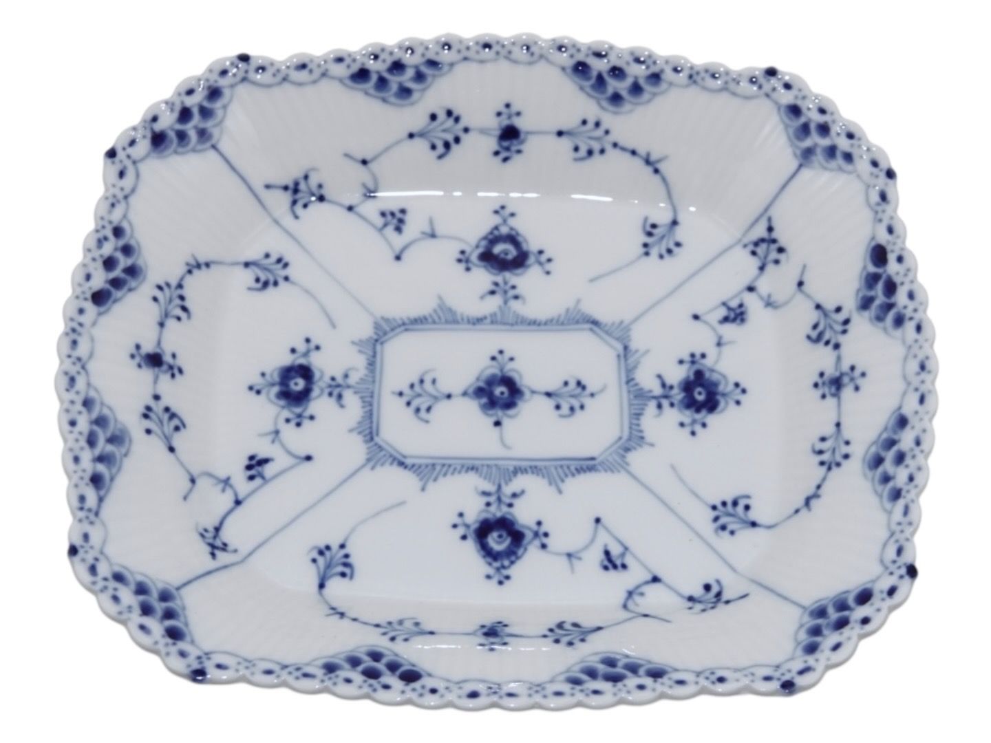 Beskrivelse: Royal Copenhagen Musselmalet Halvblonde, sjælden set lille brødbakke.