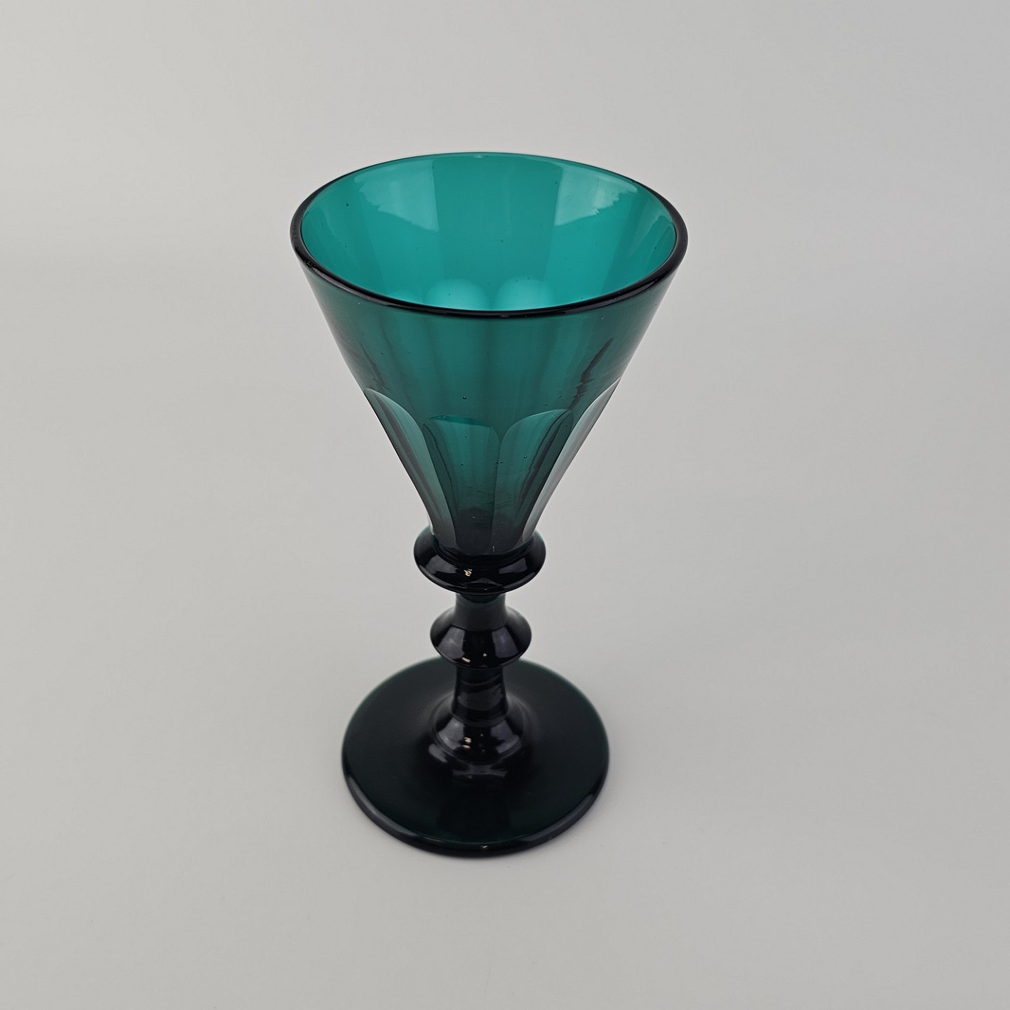 Beskrivelse: Håndblæste Anglaise blå vinglas produceret mellem 1853 og 1920