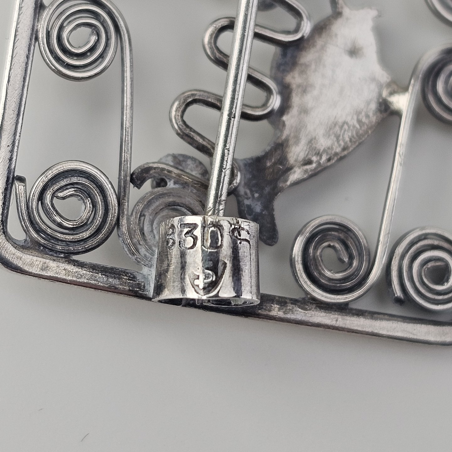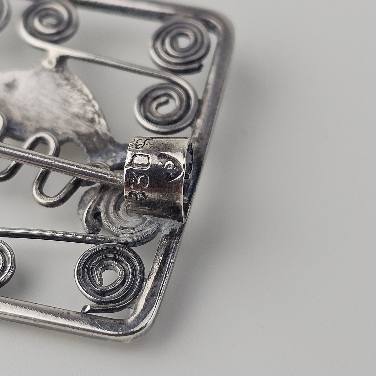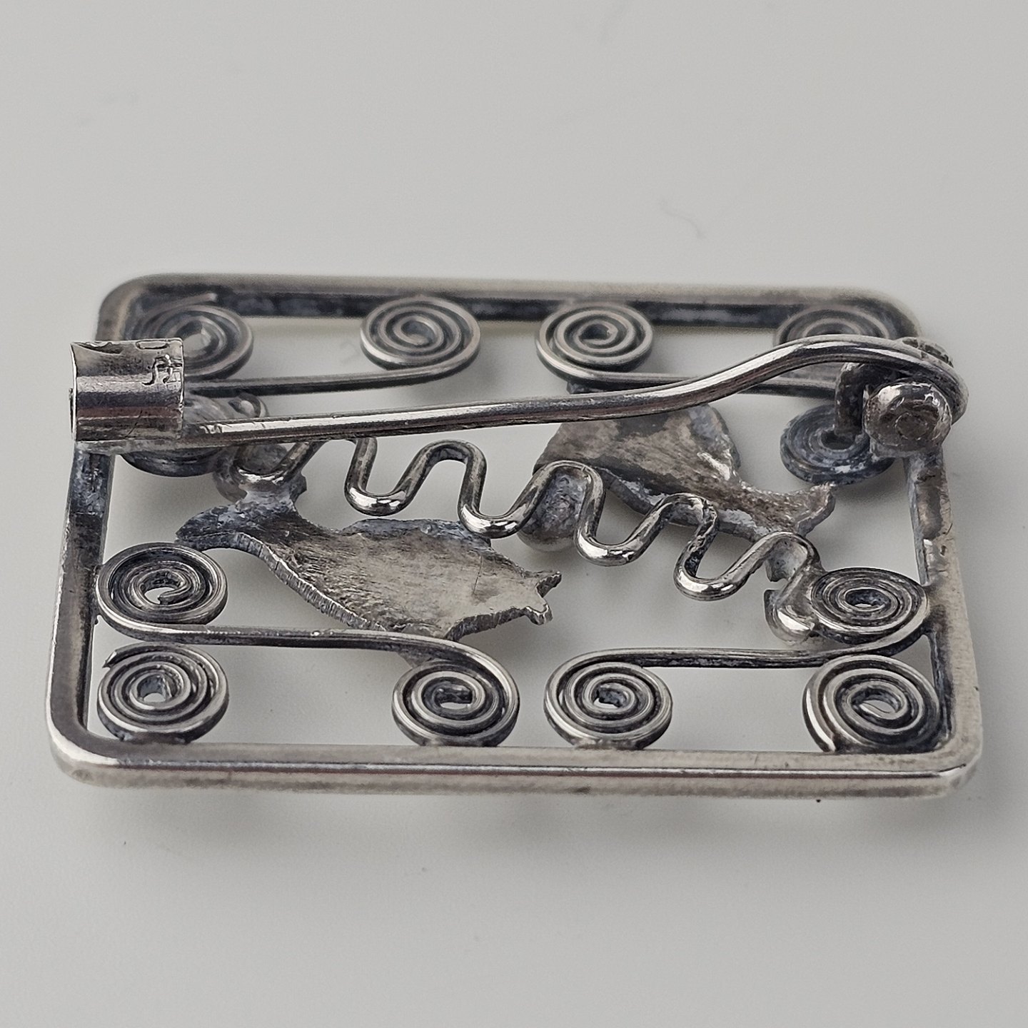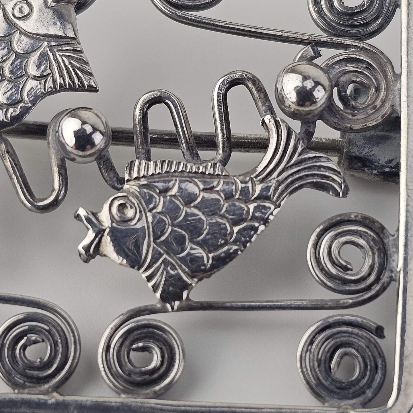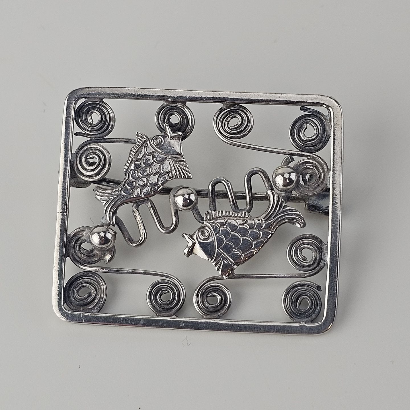 : Broche i sølv med motiv af fisk