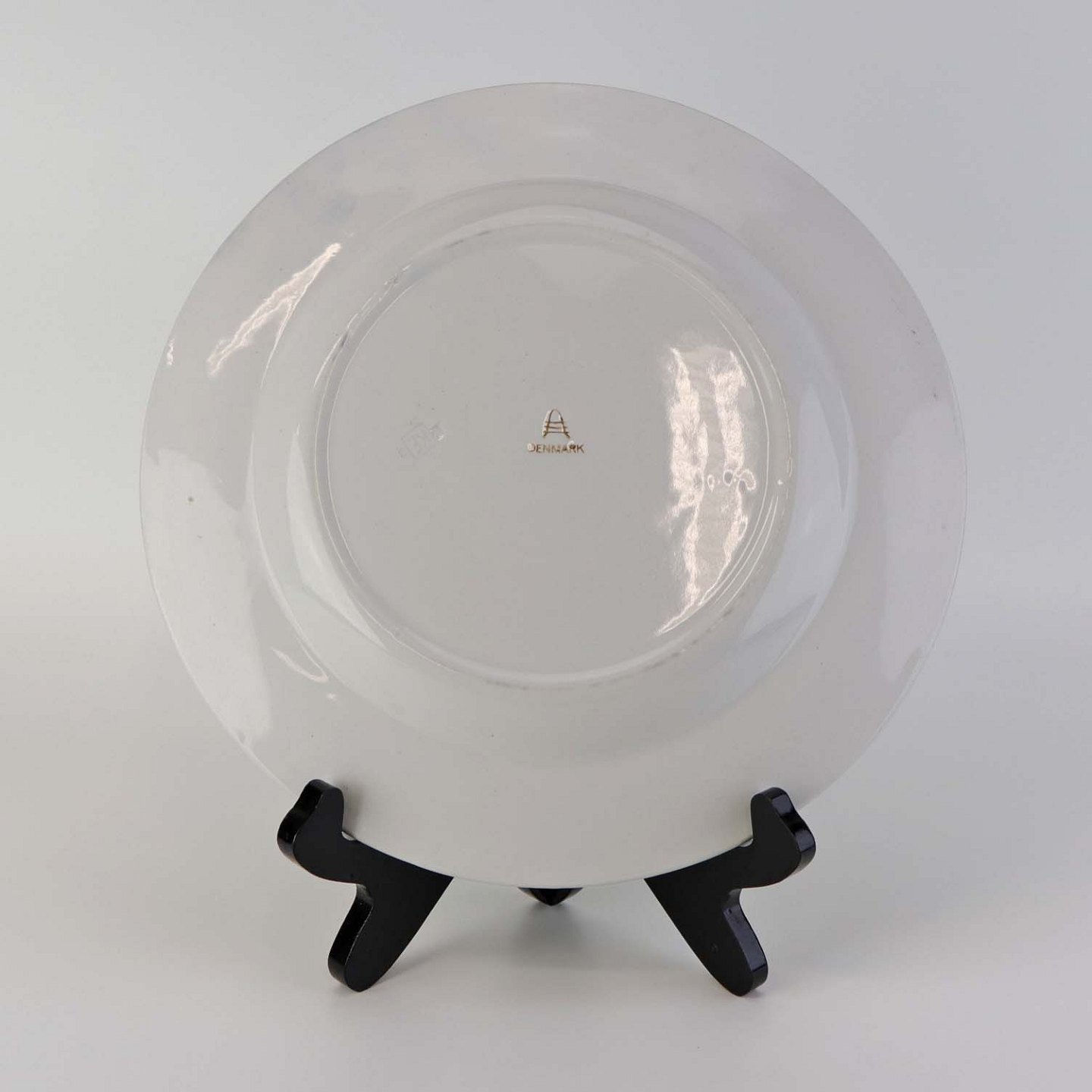 Beskrivelse: Flad middagstallerken i fajance fra Hjortestellet Convolvolus, som blev fremstillet i perioden 1930-1940