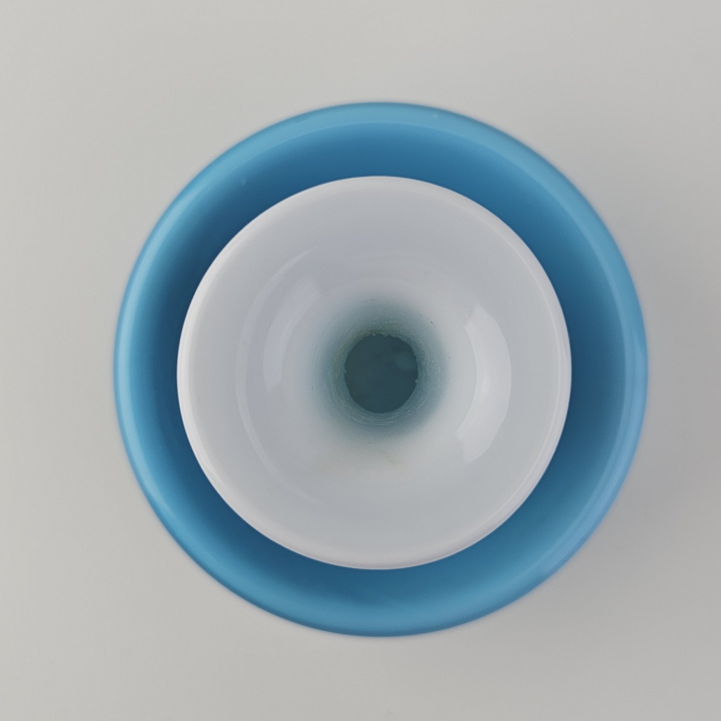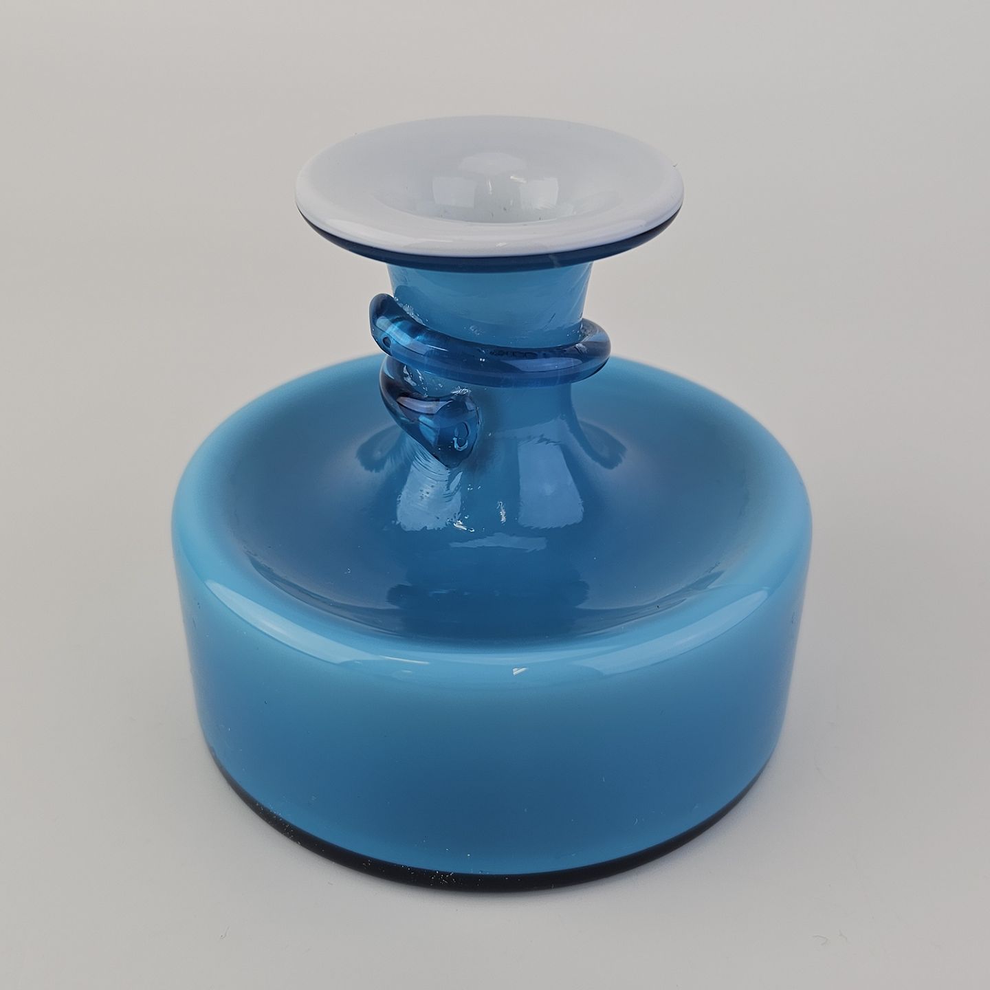 Beskrivelse: Napoli glasvase i blåt opalglas med hvid inderside