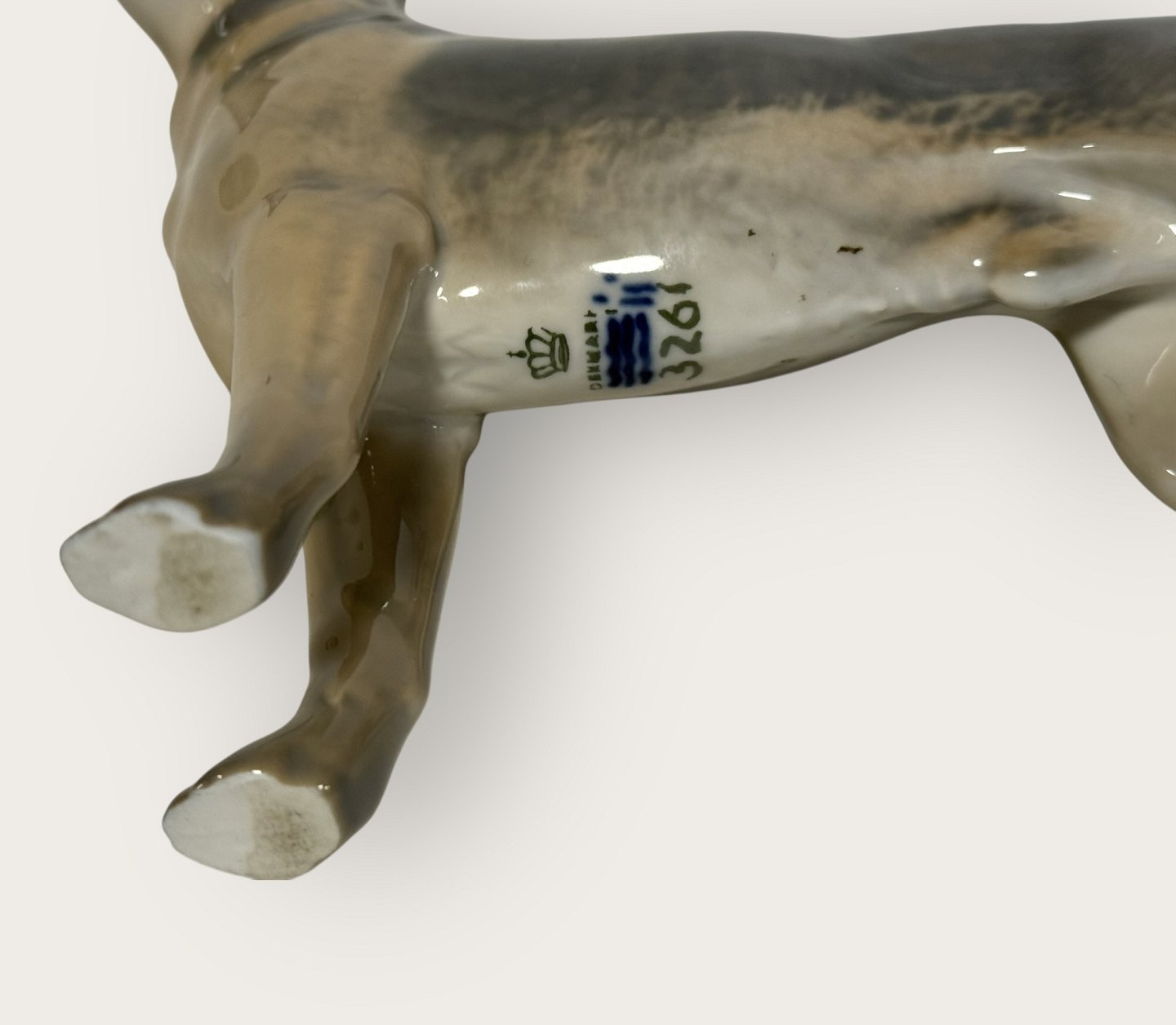 Beskrivelse: Royal Copenhagen, Schäferhund, #3261, 1. sortering, Mål: 20x16cm *Fin stand.
