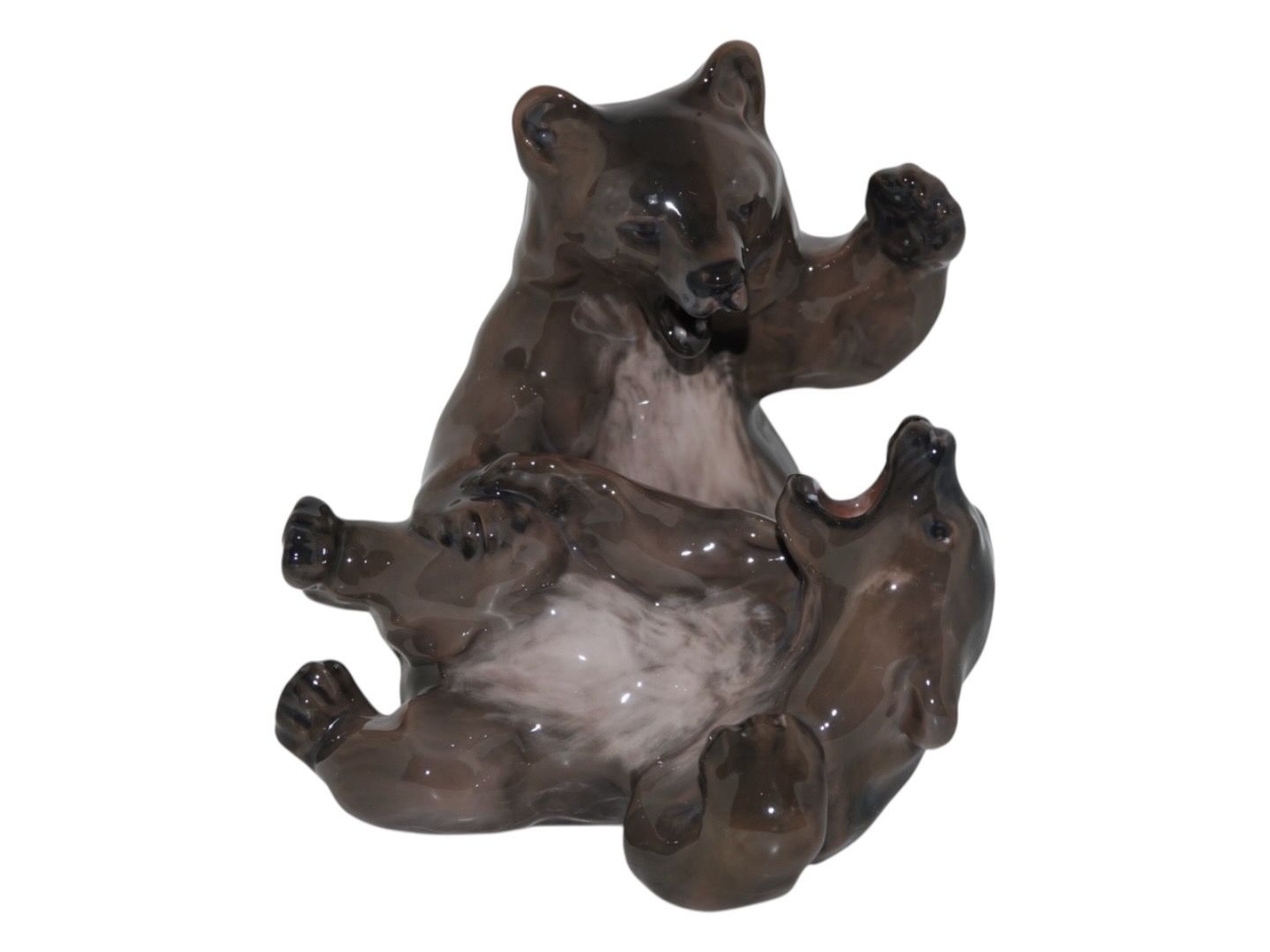 Beskrivelse: Royal Copenhagen figur, to brune kæmpende isbjørne. Sjælden variant med denne farve.