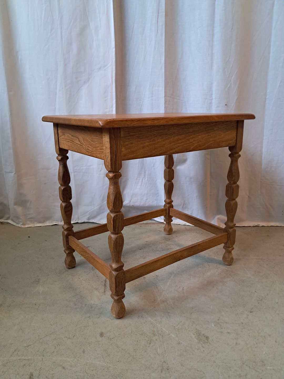Beskrivelse: Lampebord i massivt egetræ, fra 1980erne.