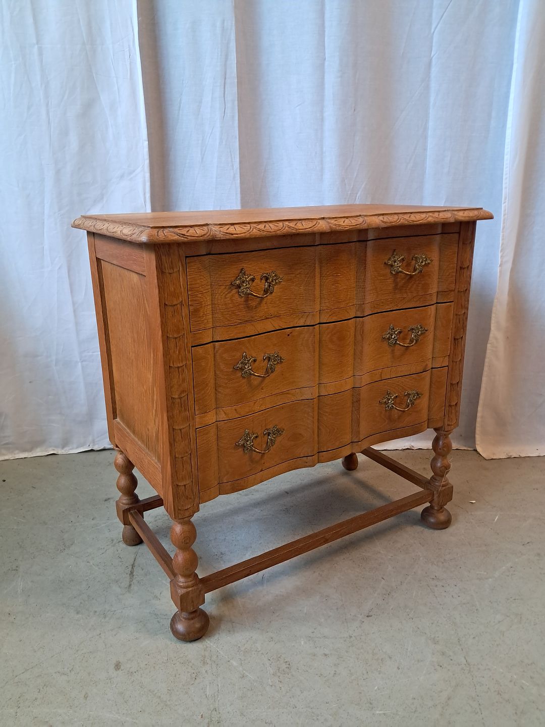 Beskrivelse: Kommode i massivt egetræ, fra 1980erne.