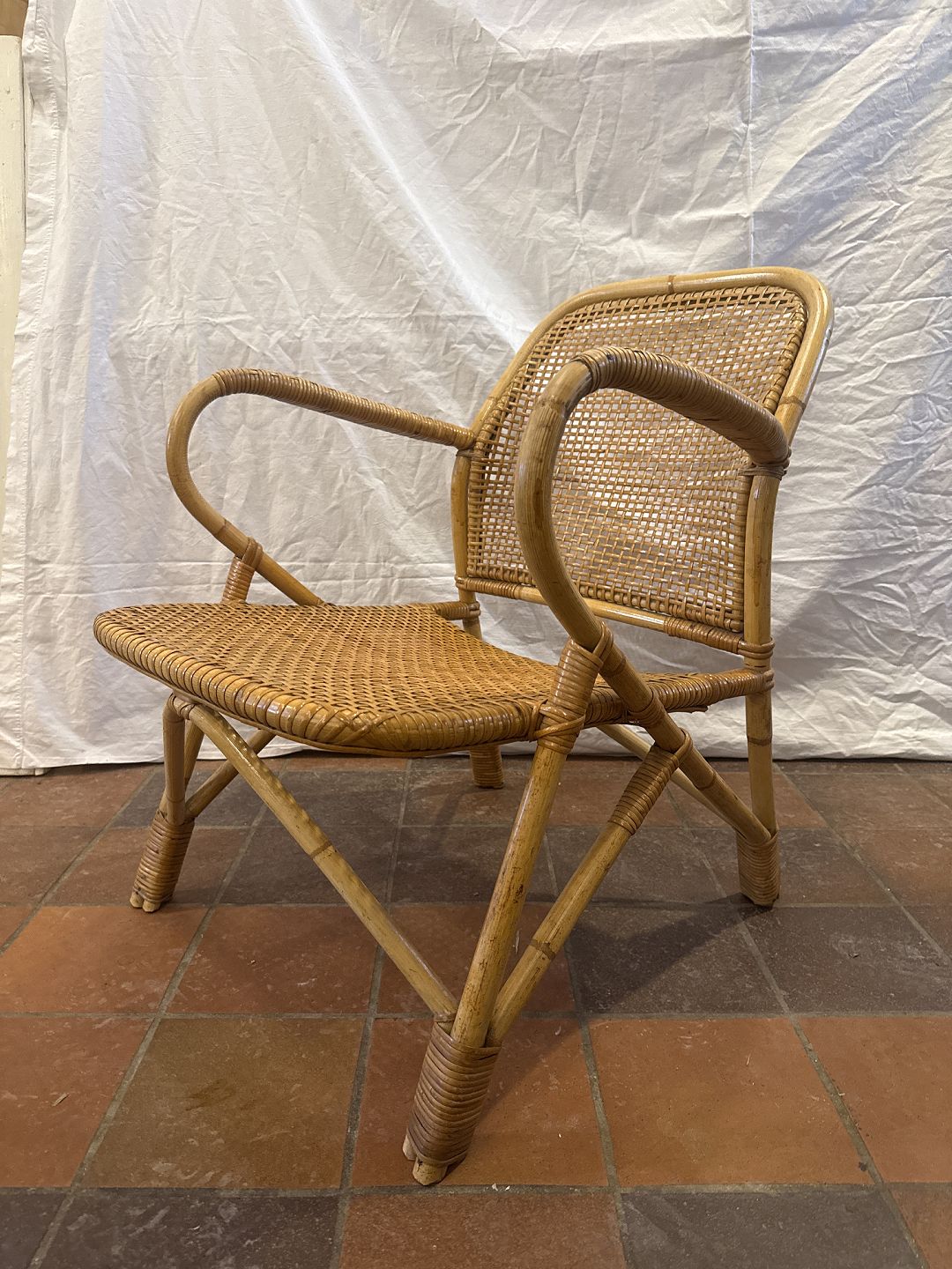 Beskrivelse: Dansk møbelproducent kurvestol i bambus og sjeneflet.