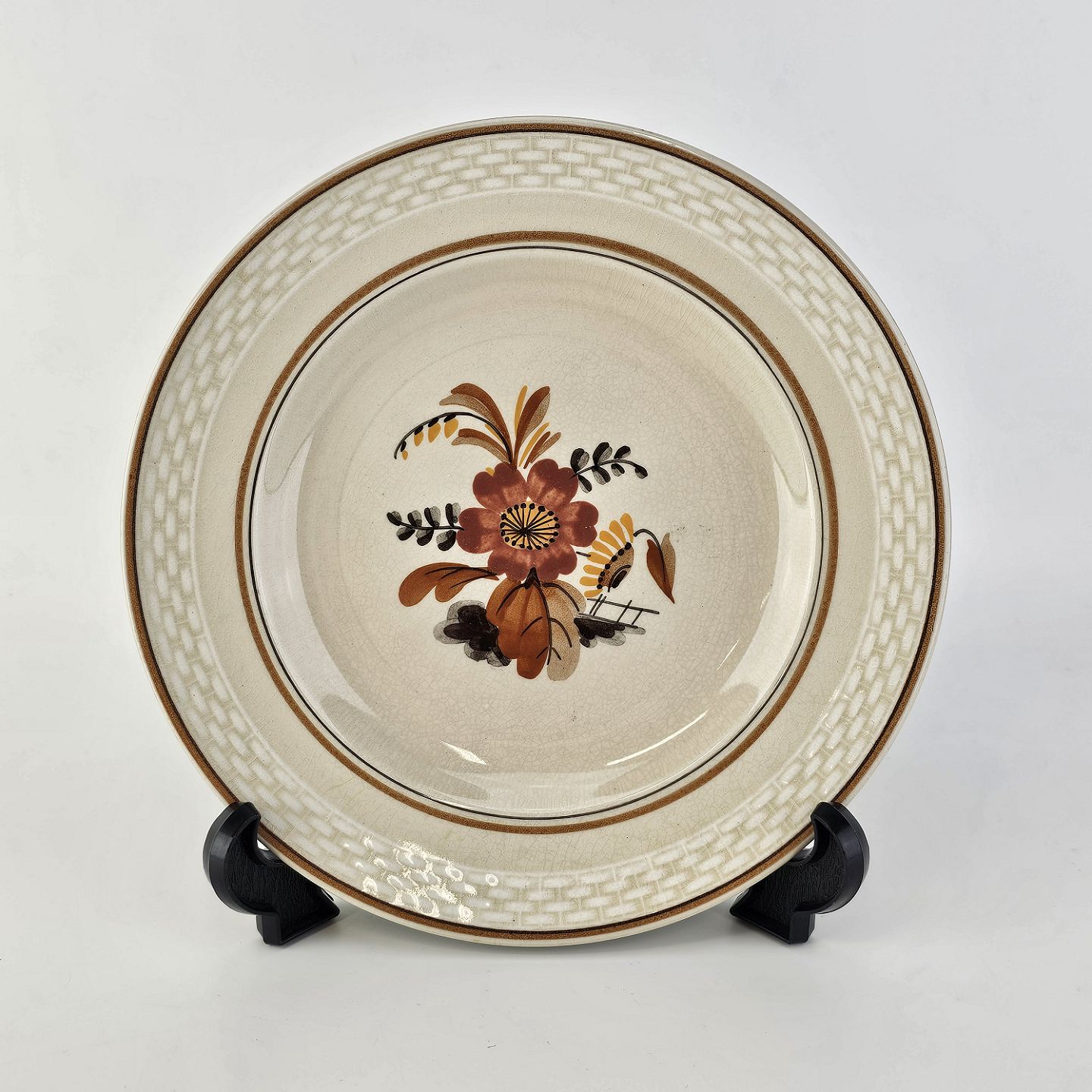 Knud er cremefarvet fajance dekoreret med flettet kant og brune og orange blomster. Stellet blev produceret i år 1934-1963.