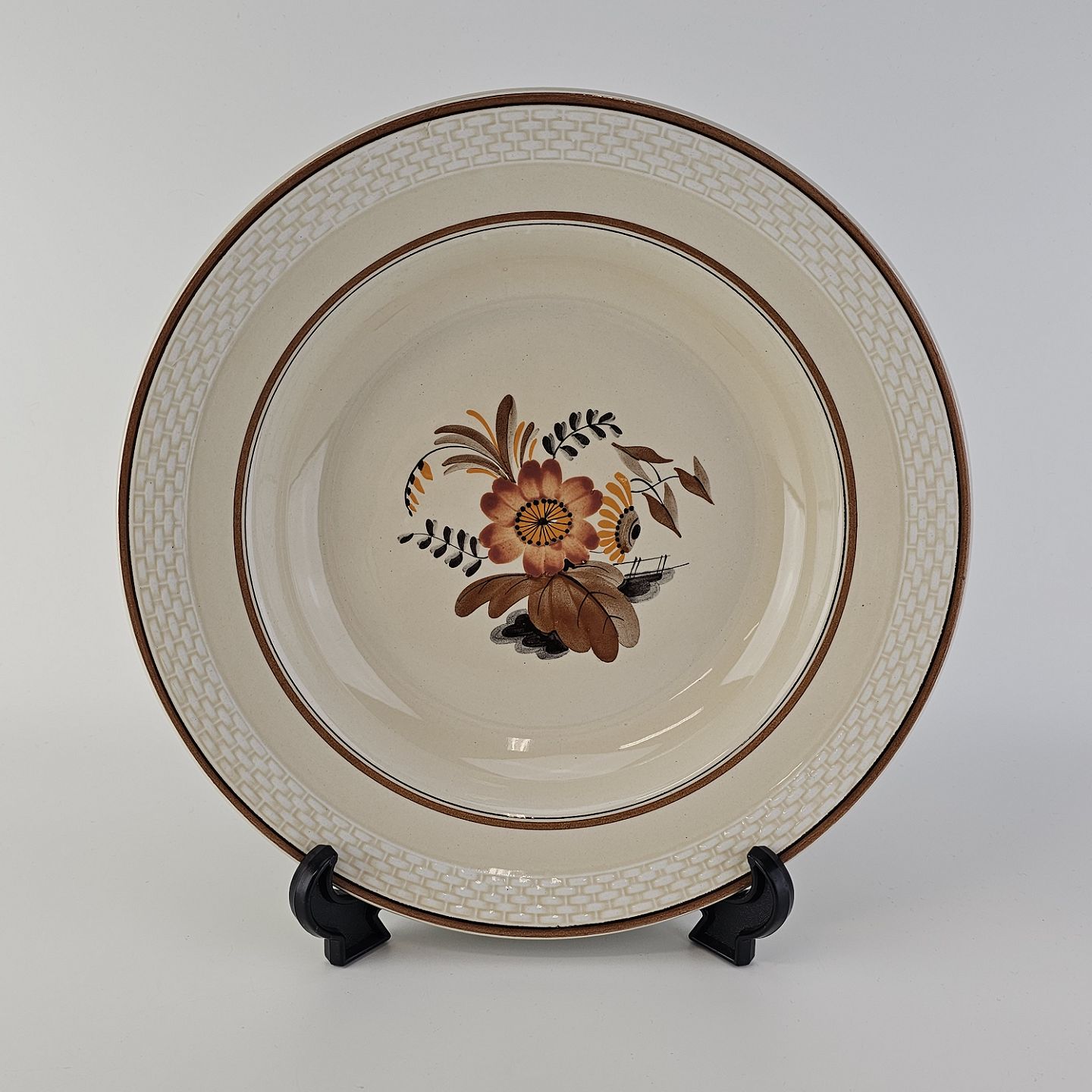 Beskrivelse: Dyb tallerken i fajance fra stellet Knud