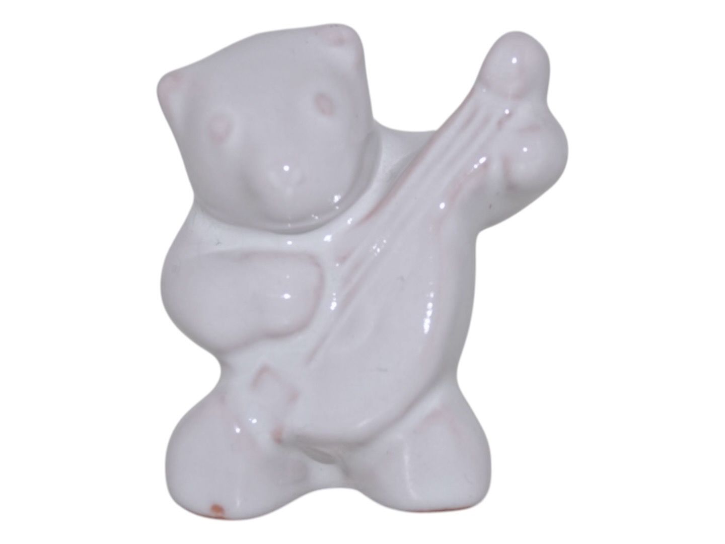 Beskrivelse: Hjorth keramik miniature figur, hvid bjørneunge med mandolin.