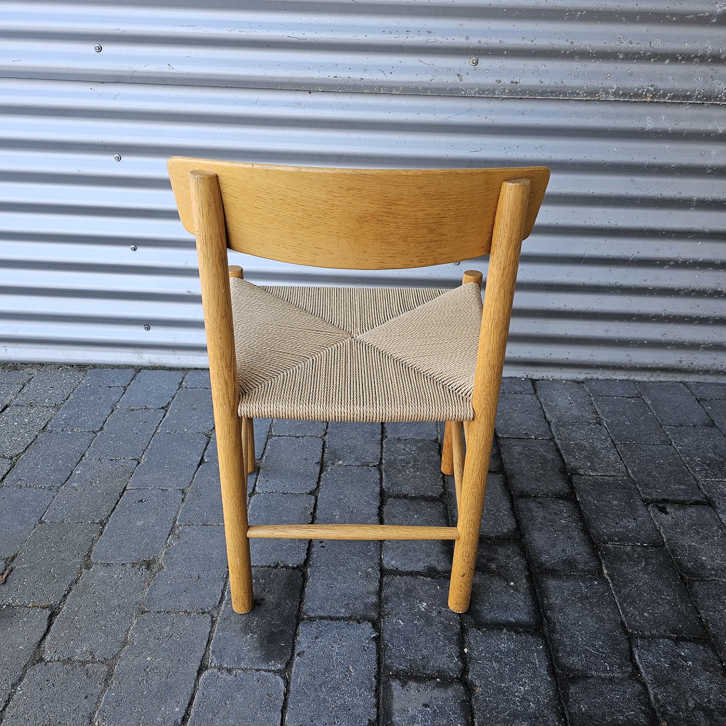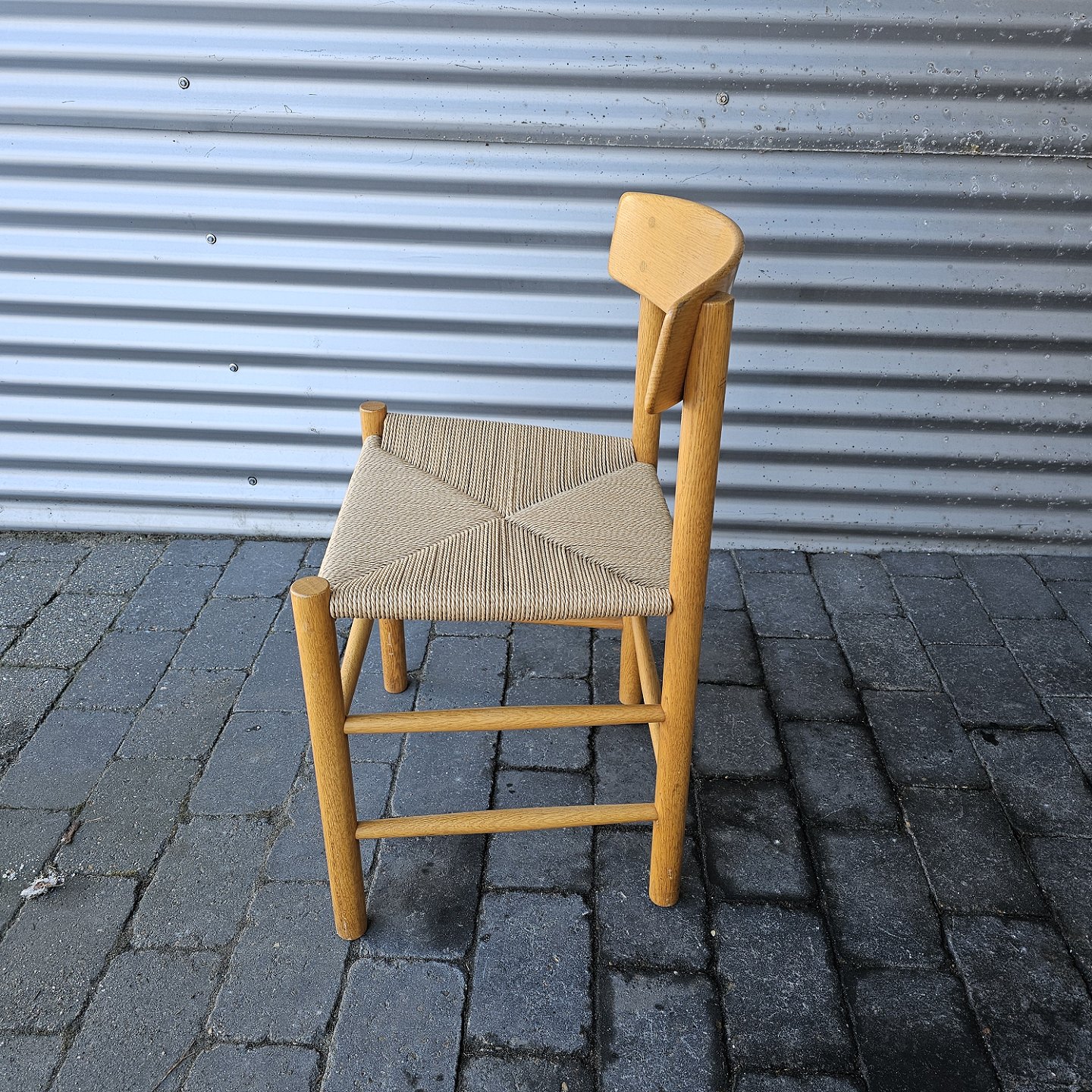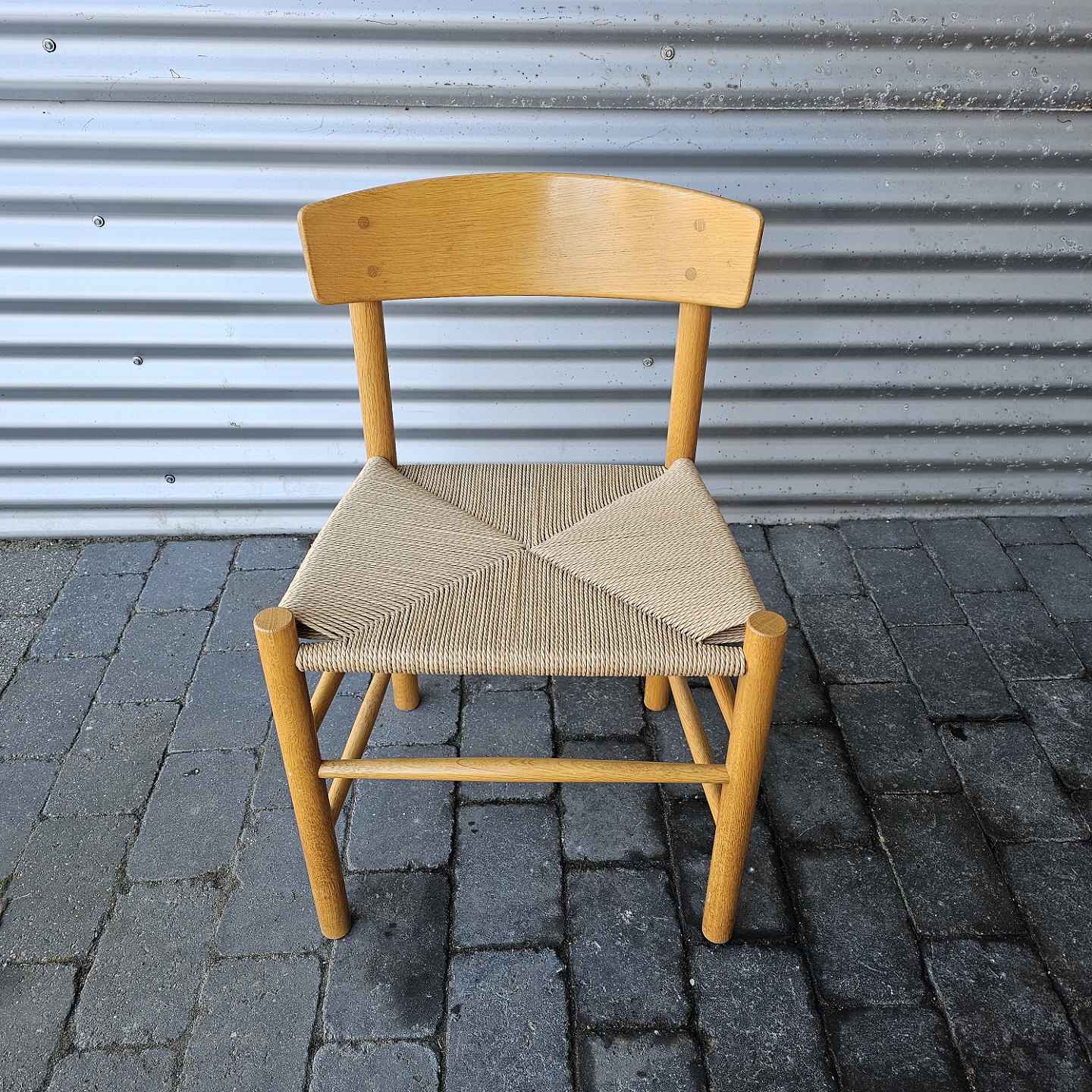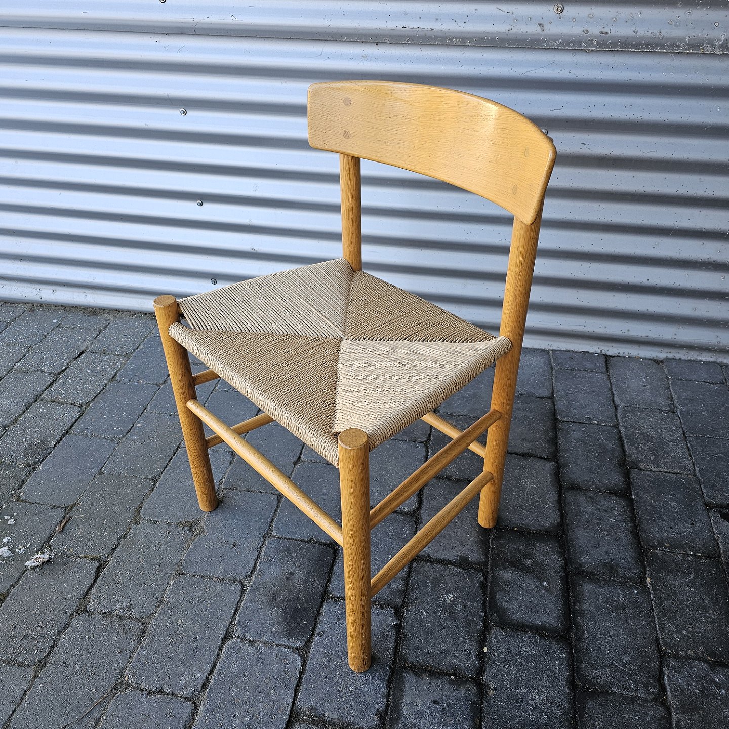 Beskrivelse: Sæt af 4 folkestole i lakeret eg med sæder af flet, model J39