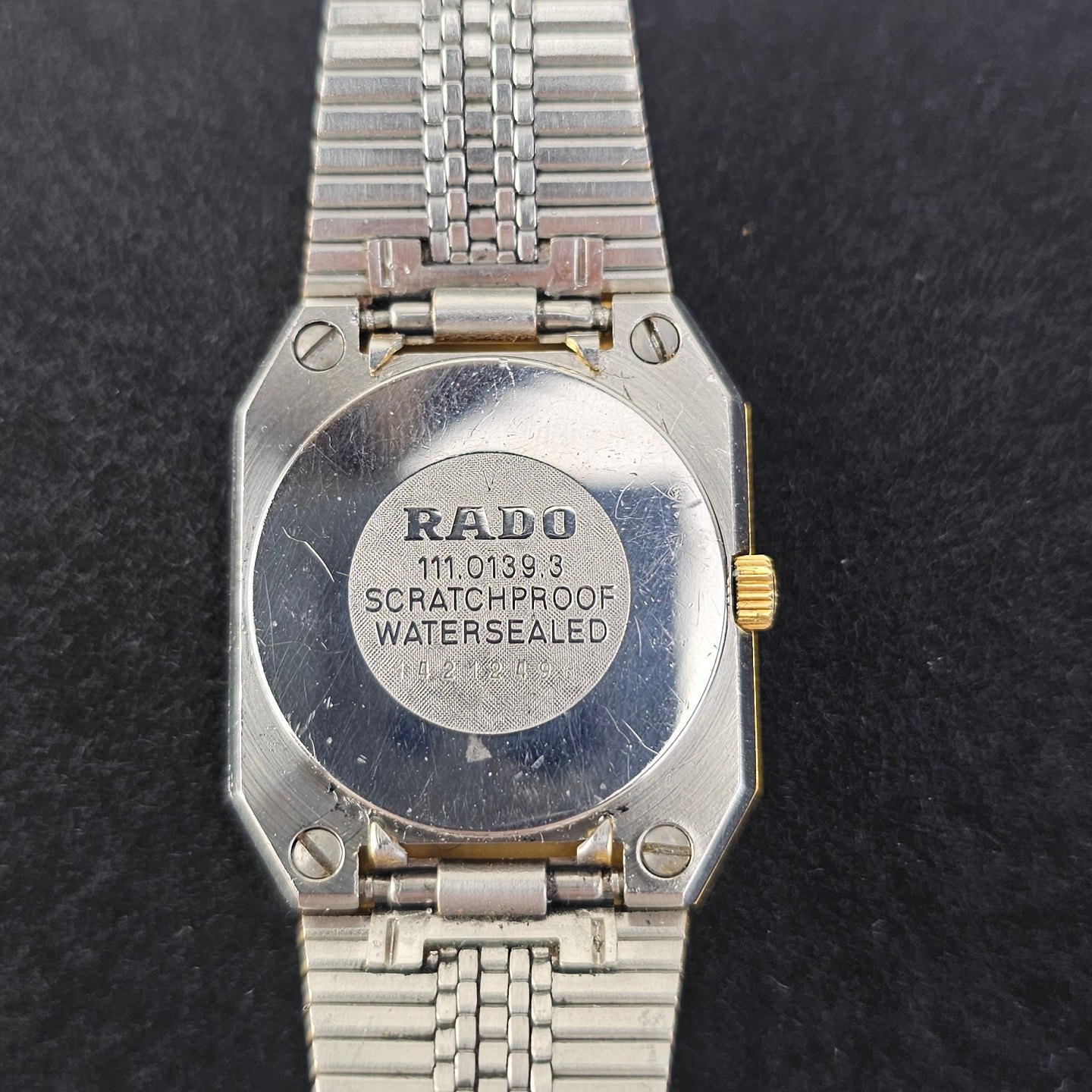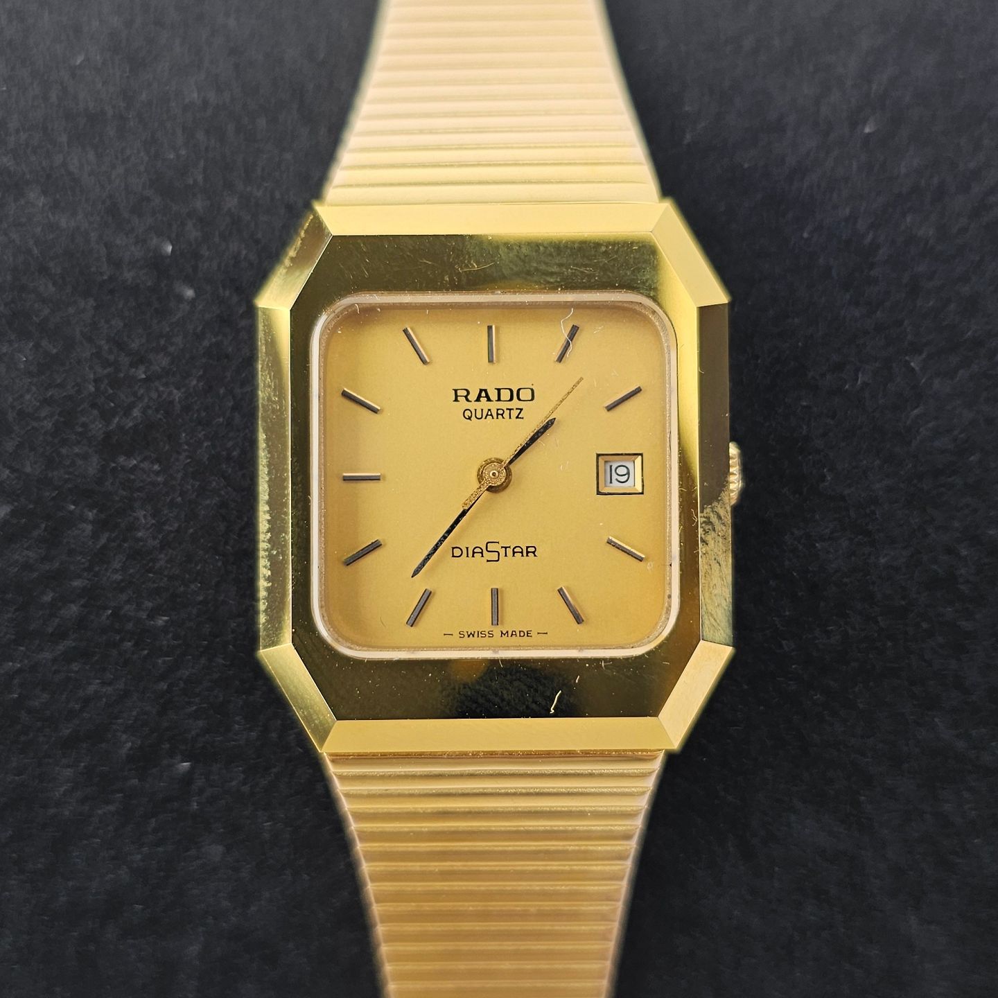Beskrivelse: Armbåndsur i guldbelagt rustfrit stål. Mekanisk renset med nyt batteri, ikke vandtæt