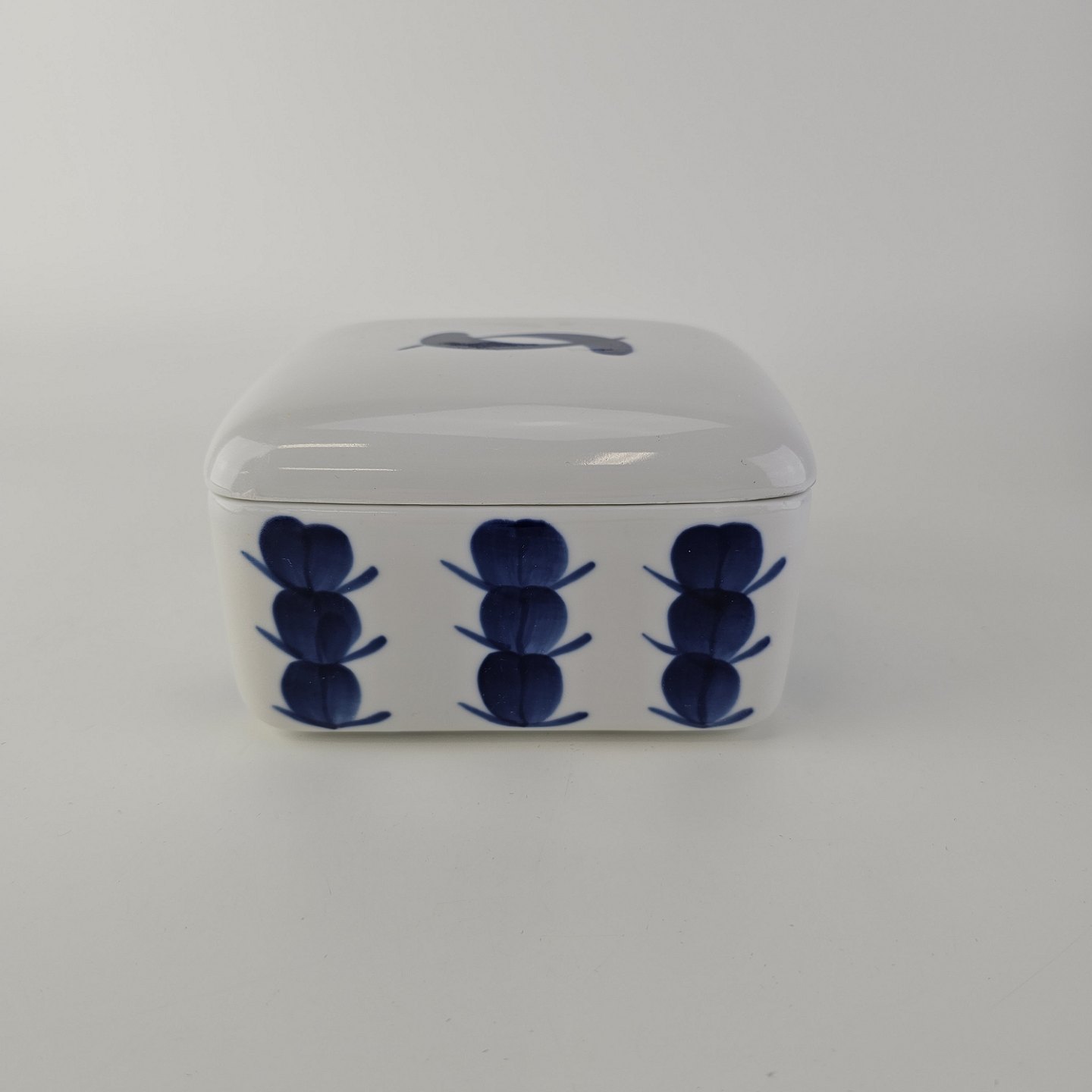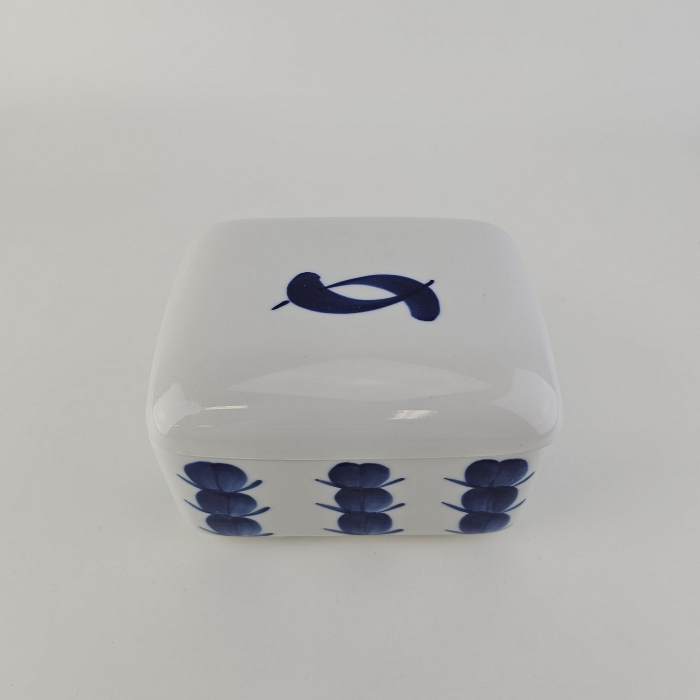 Beskrivelse: Smørboks i porcelæn fra Stellet Danild 30, også kaldet Blomsterknop