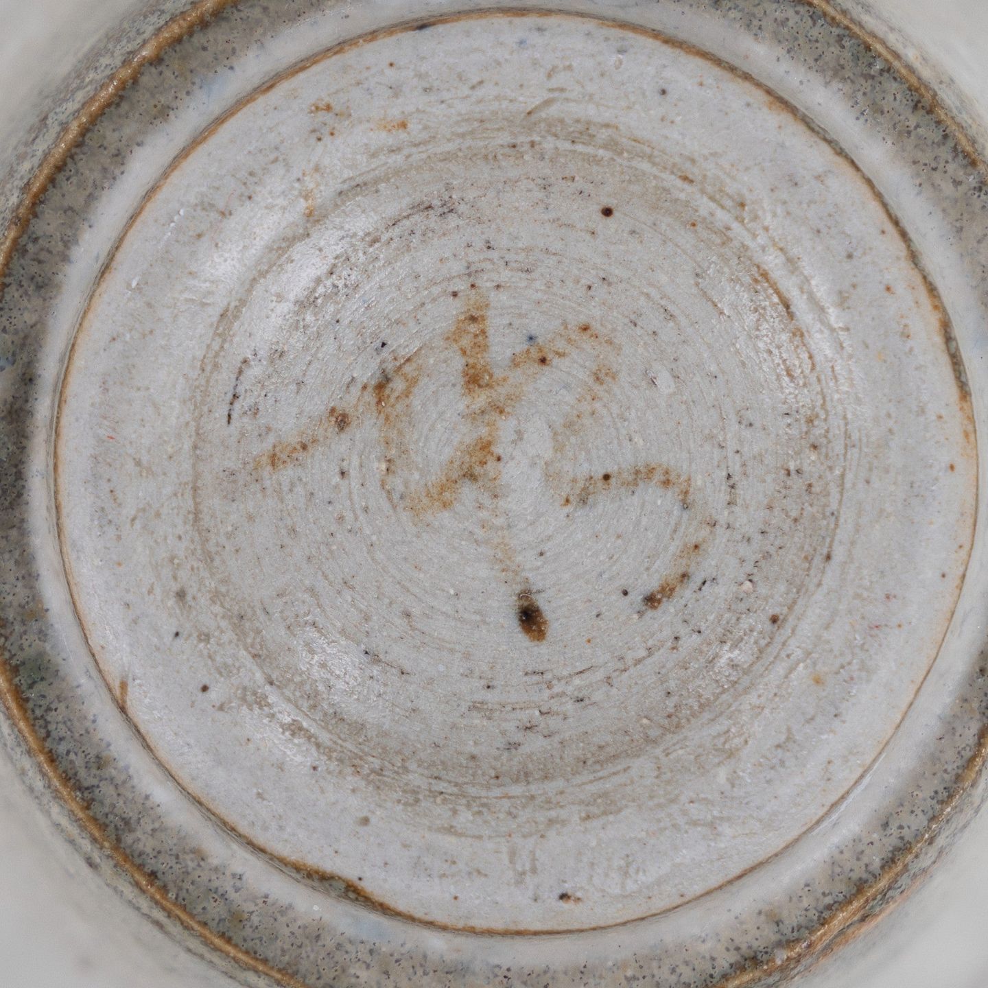 Vase i stentøj dekoreret med hvid glasur og blomstermotiv. Signeret.