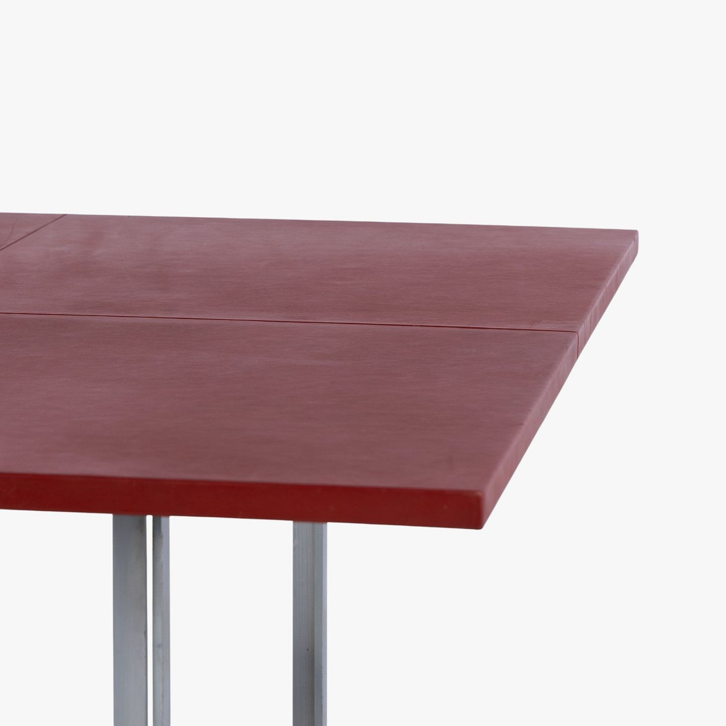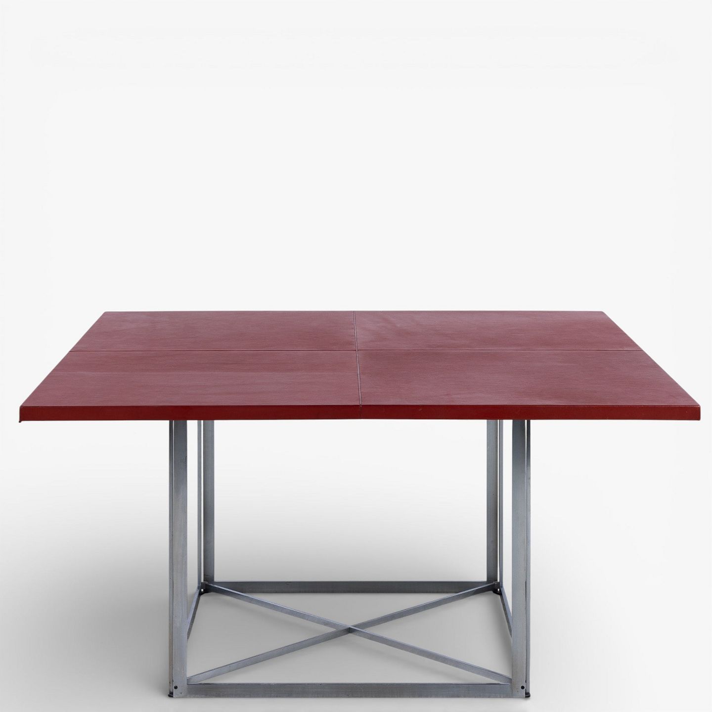 PK 40 - Kvadratisk spisebord med plade i rødt skind på stel i stål. Mærket fra producent.