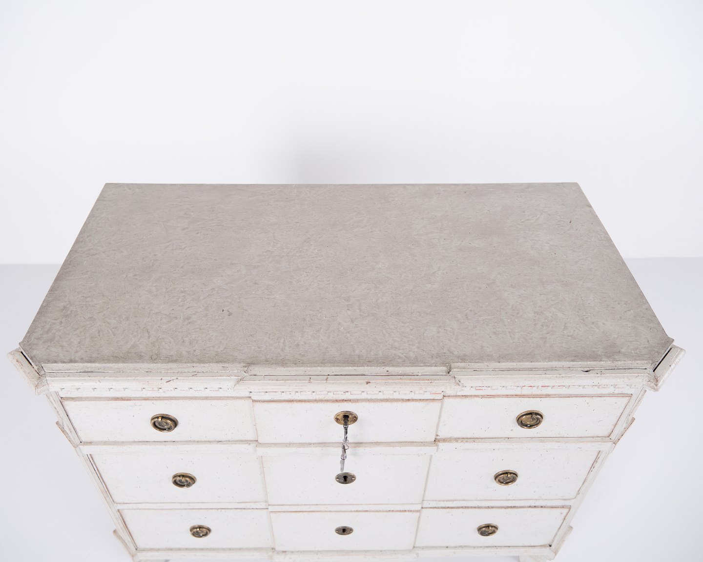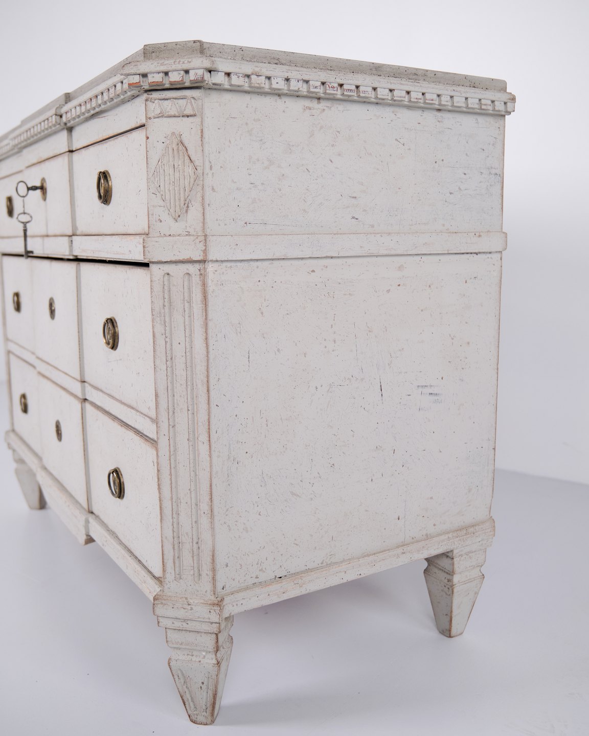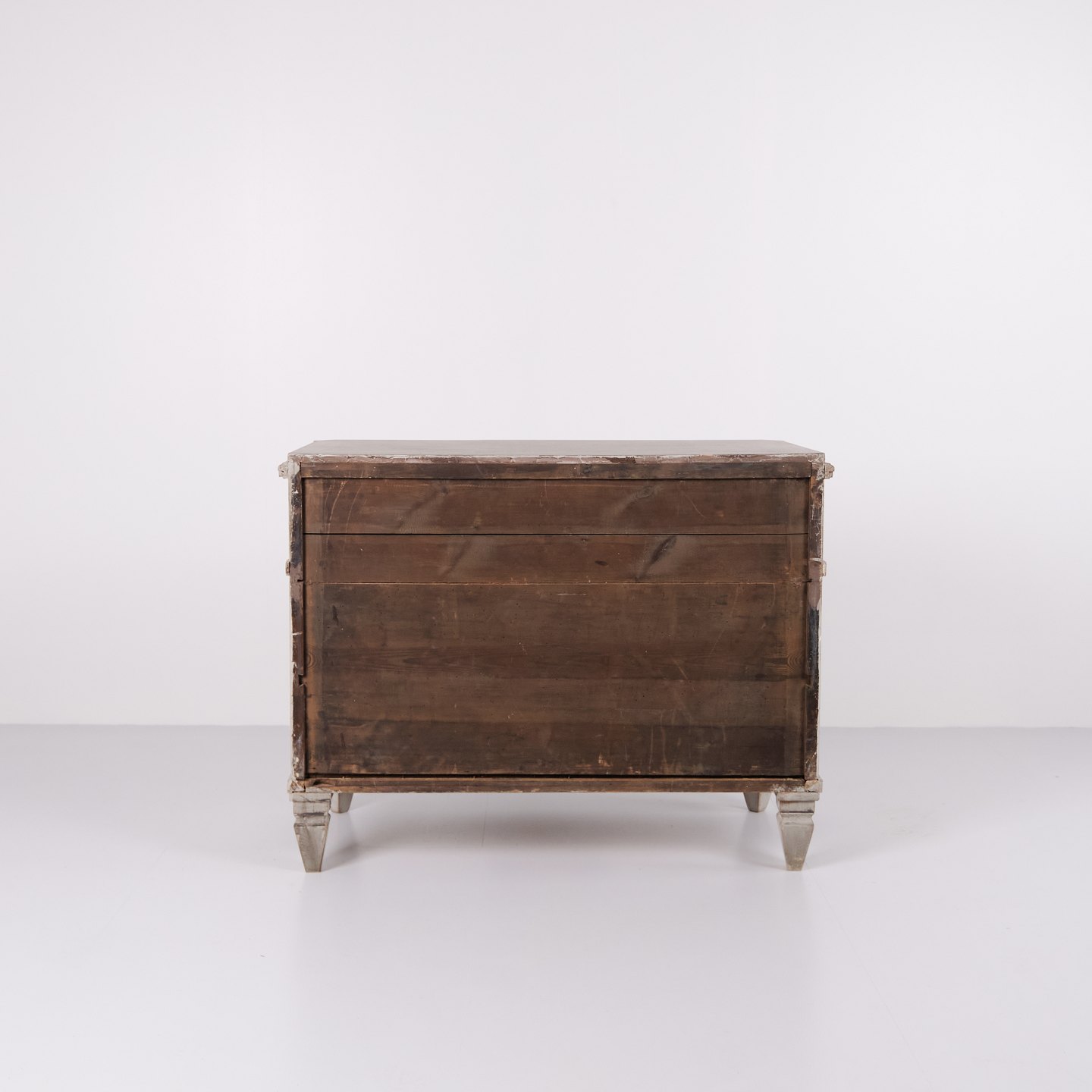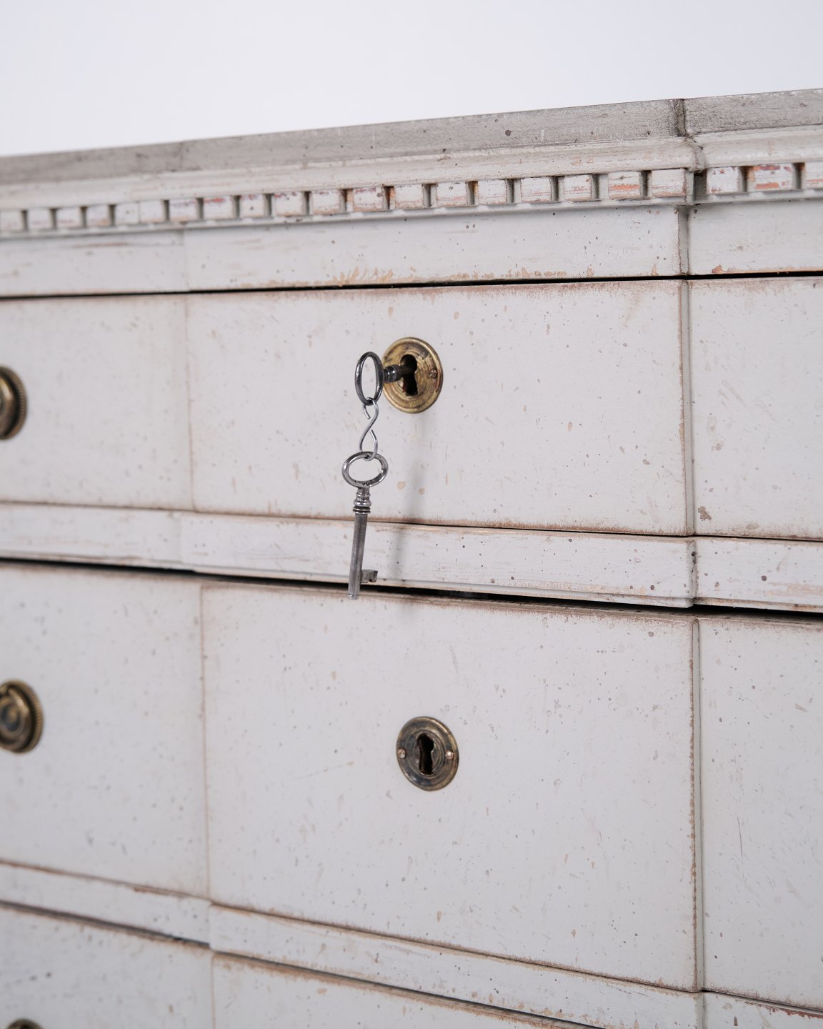 Et Par Gustavianske Kommoder gråhvid bemaling med Patina, År 1790