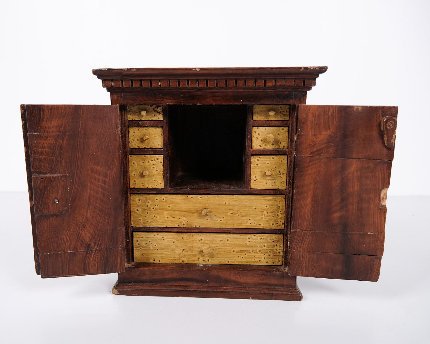 Antikt Miniature/Model Møbel i Egetræ med Håndsmedede Beslag, År 1840erne