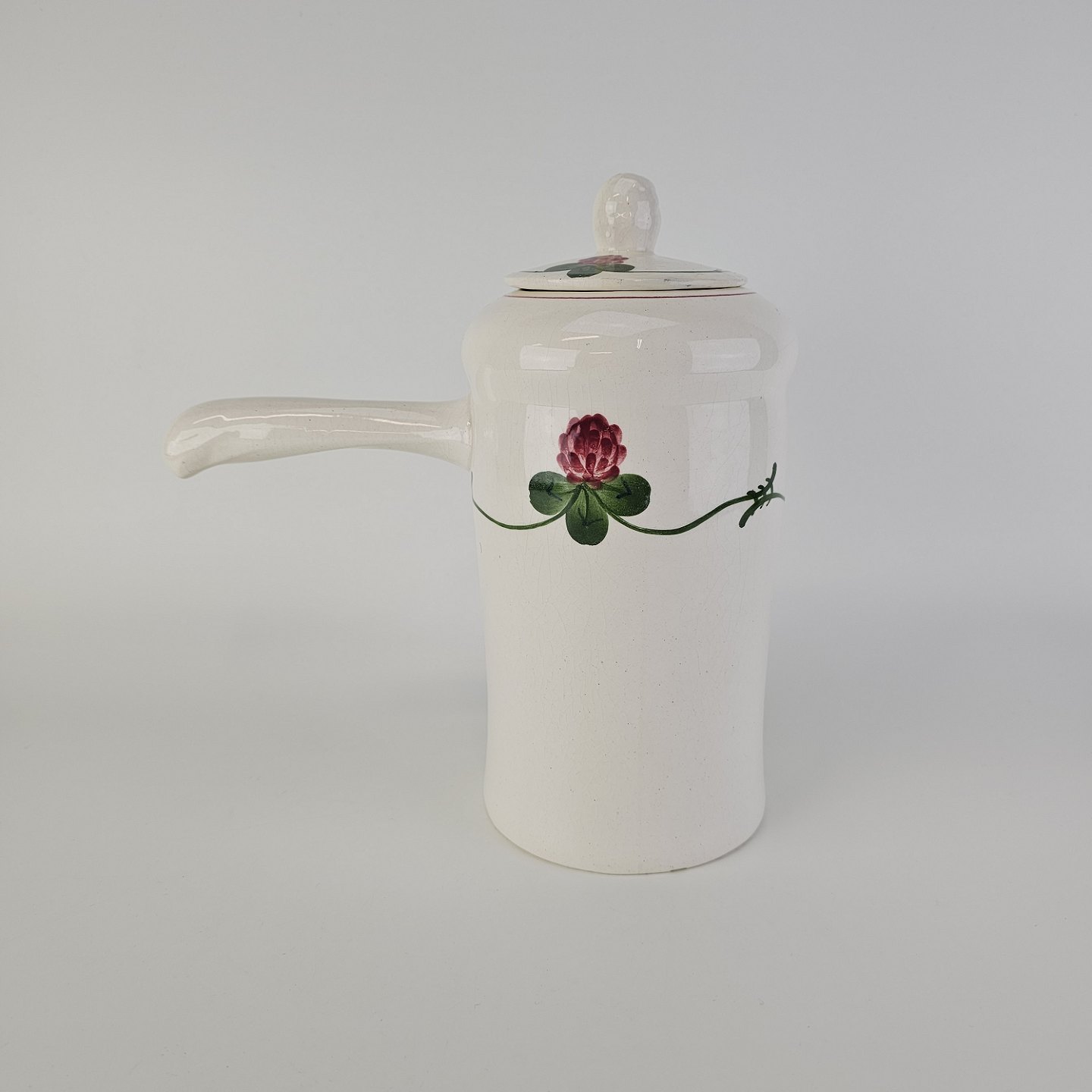 Kløver er fajancestel med motiv af rødkløver på lys baggrund.