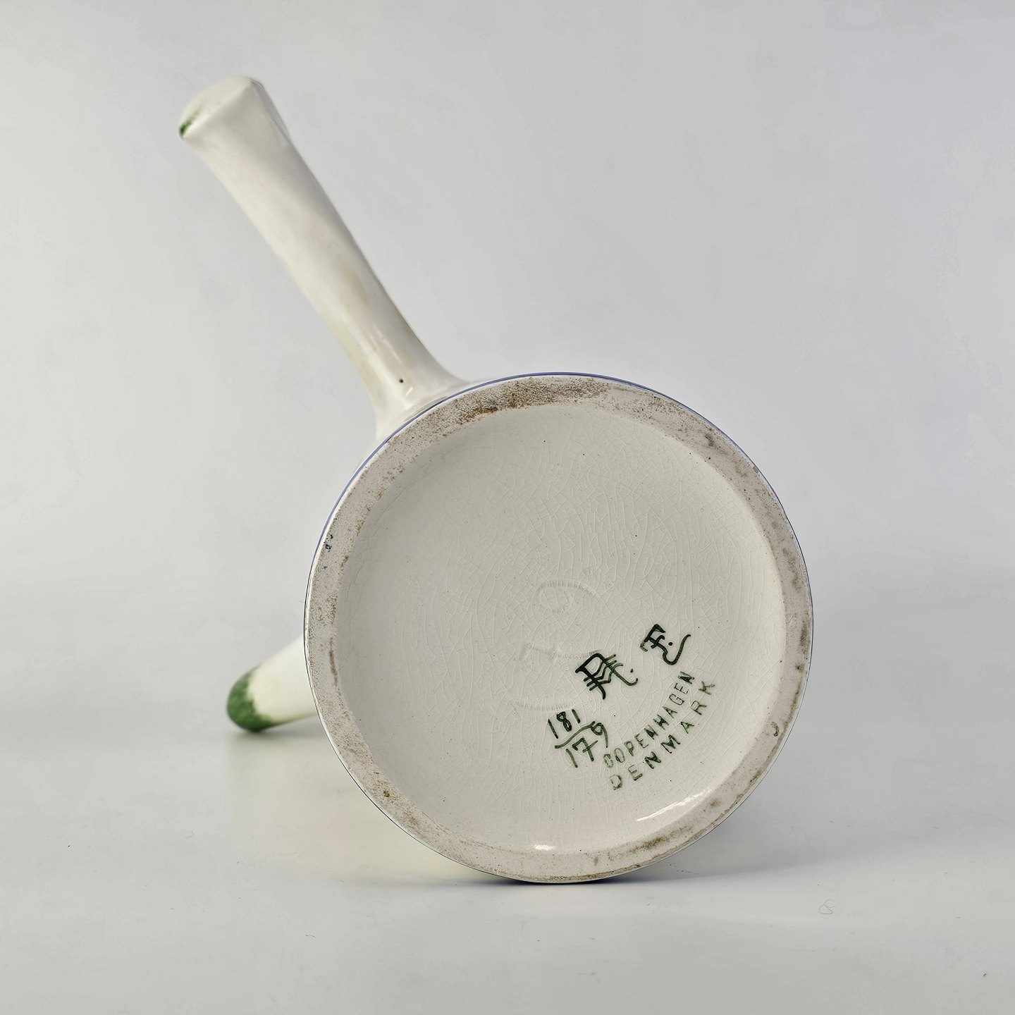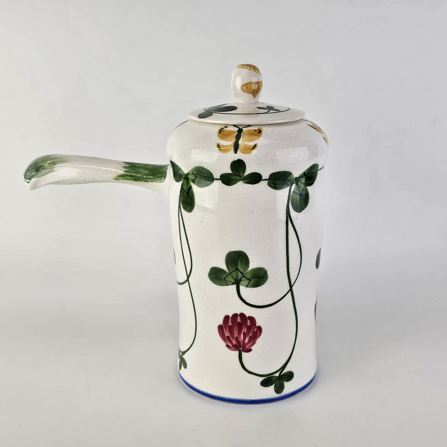 Beskrivelse: Kande i kunstfajance fra stellet Kløver. Nr. 181/179
