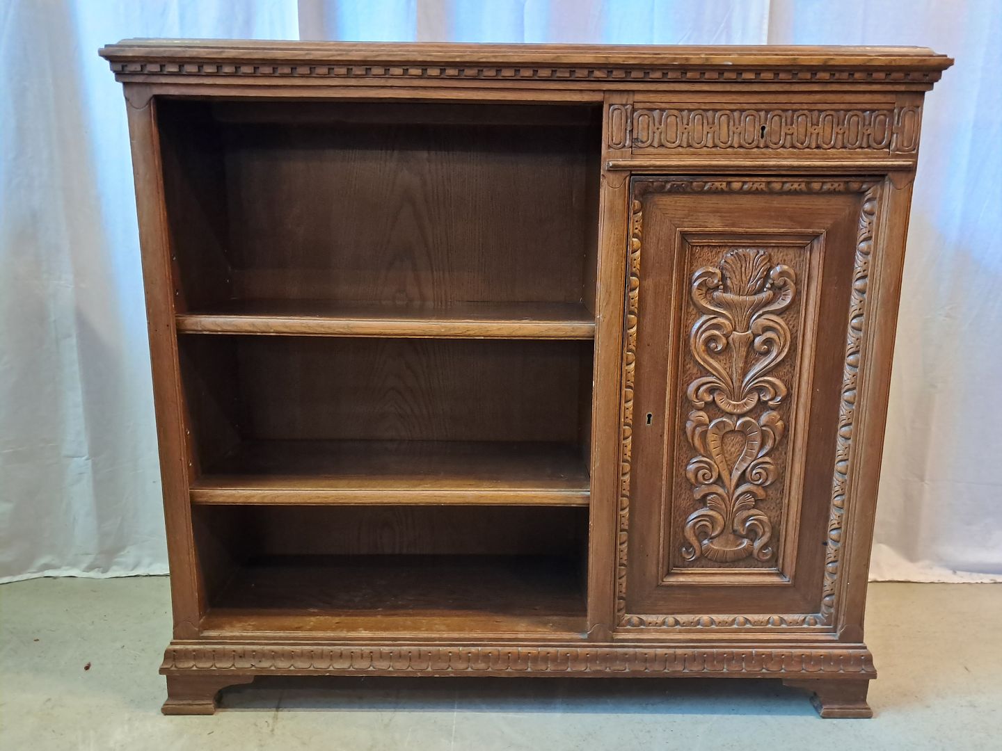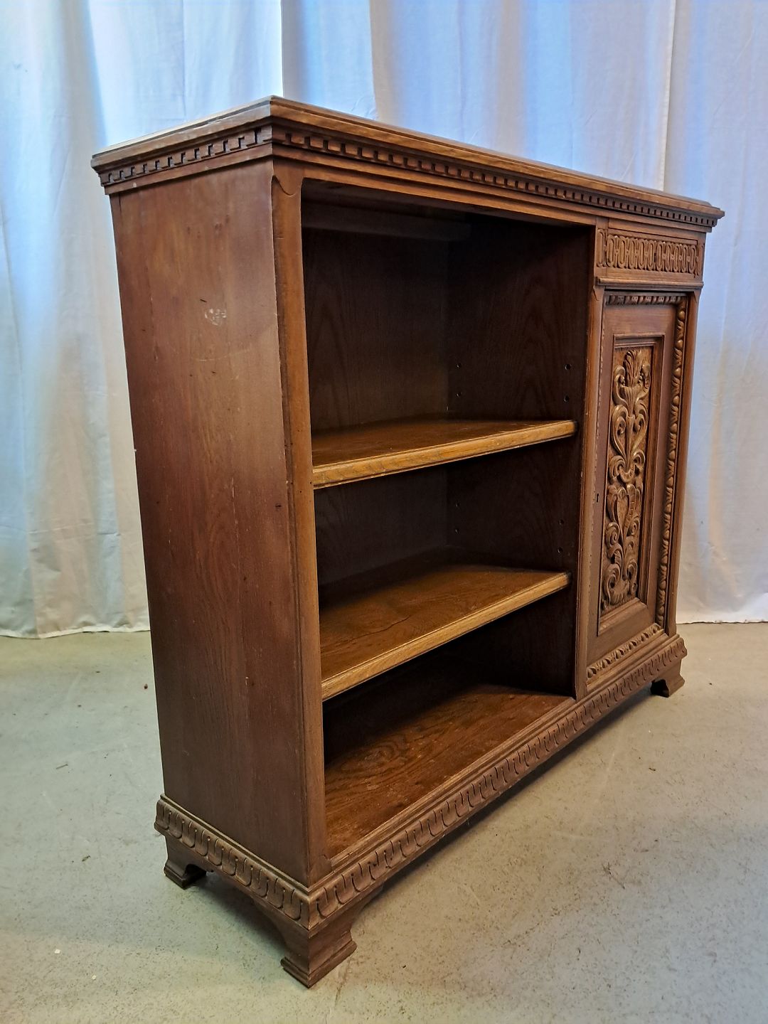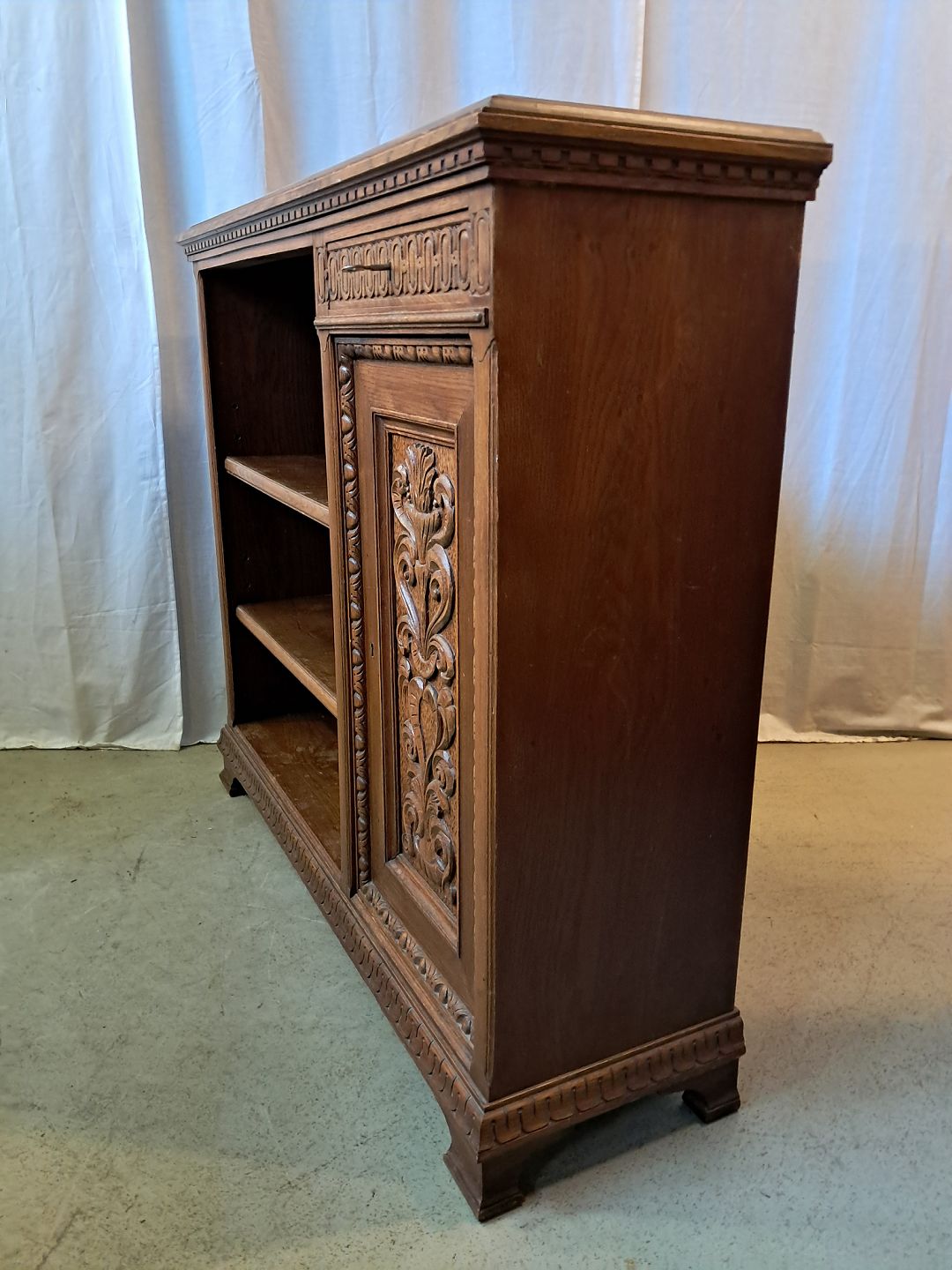 : Reol i fineret egetræ, fra 1930erne.